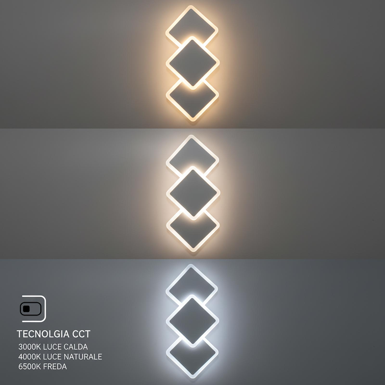 Applique da parete 3 rombi lampada decorativa LED 14W design elegante luce camera da letto ufficio