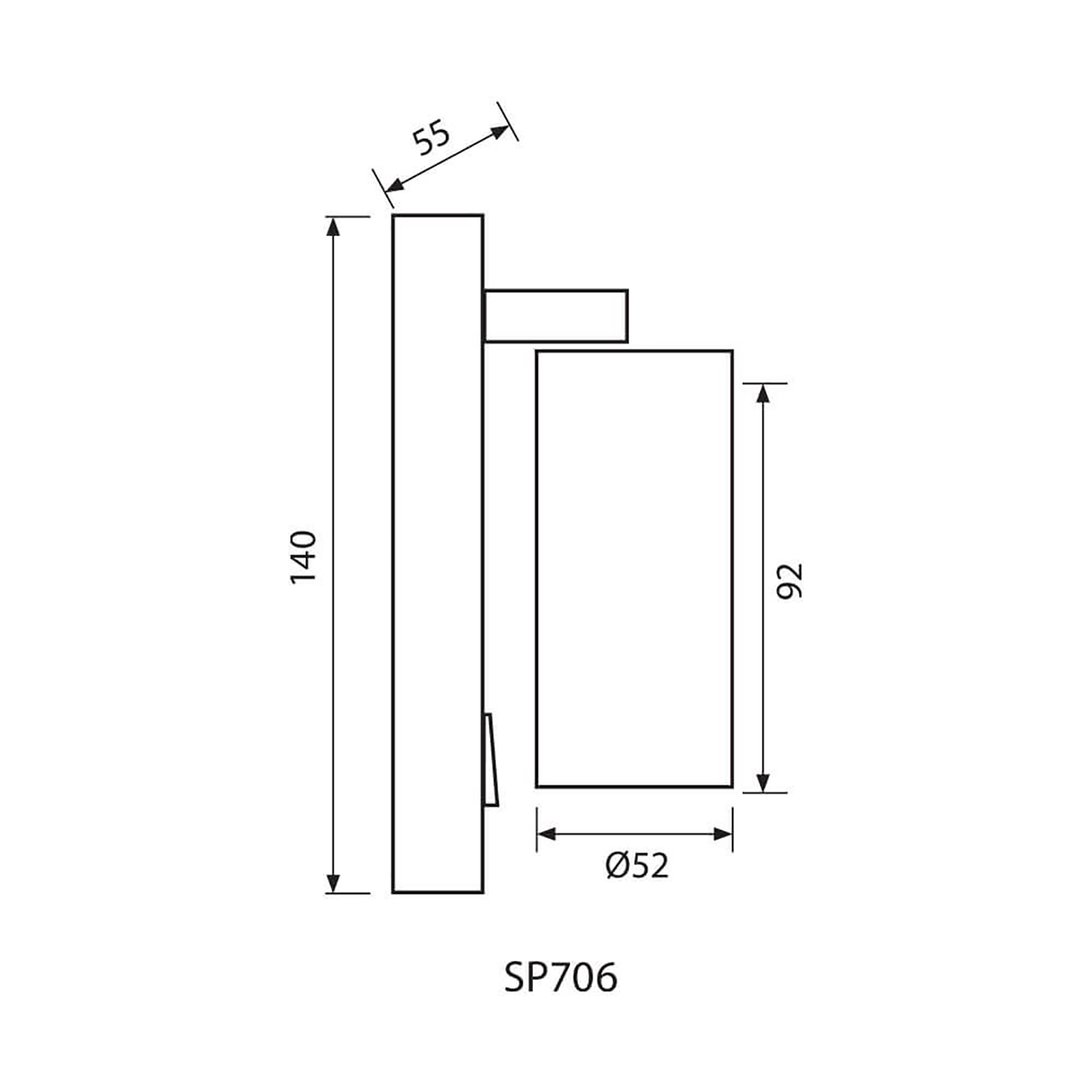 Dimensioni dell'applique: Ø 52mm x 92mm - Dimensioni base di fissaggio: 140mm x 55mm