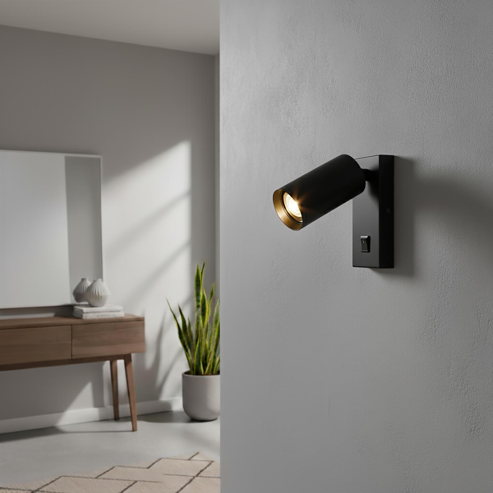 Faretto da parete realizzato in alluminio dal design moderno e minimal molto versatile ideale in molti utilizzi. Dotato di un diffusore a forma di cilindro orientabile consente di direzionare la luce secondo le nostre esigenze. Ideale come applique da parete per l'illuminazione di quadri, oggetti, per l'illuminazione di negozi, vetrine, uffici, per illuminare quadri, fotografie, in gallerie d'arte, in gioielleri per illuminare gioielli. Adatto anche come luce da comodino per creare effetti di cromoterapia in camere da letto, per hotel, alberghi.