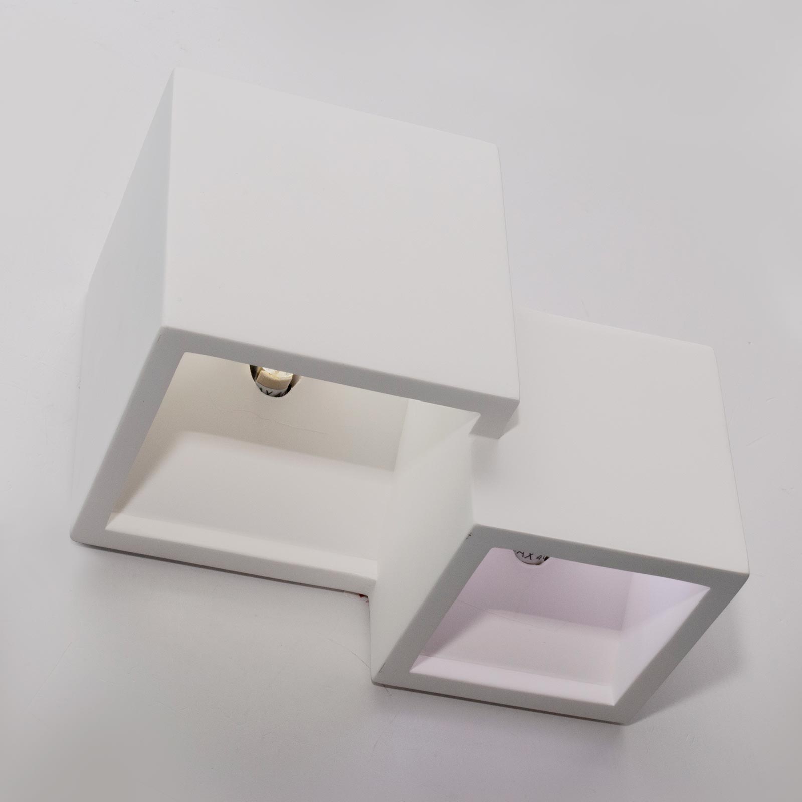 Applique cubo in gesso dotato di doppio attacco G9 supporta 2 lampade LED G9 ideale per l'illuminazione interna di ingressi, corridoi, per arredare saloni, soggiorni, cucine moderne, negozi, uffici, per dare un tocco di eleganza ai propri ambienti interni.