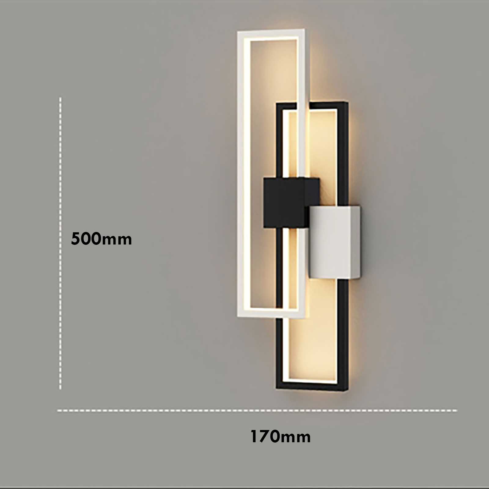 Dimensione applique: 500mm x 170mm x 65mm - Dimensioni rosetta per il fissaggio: 120mm x 60mm x 40mm