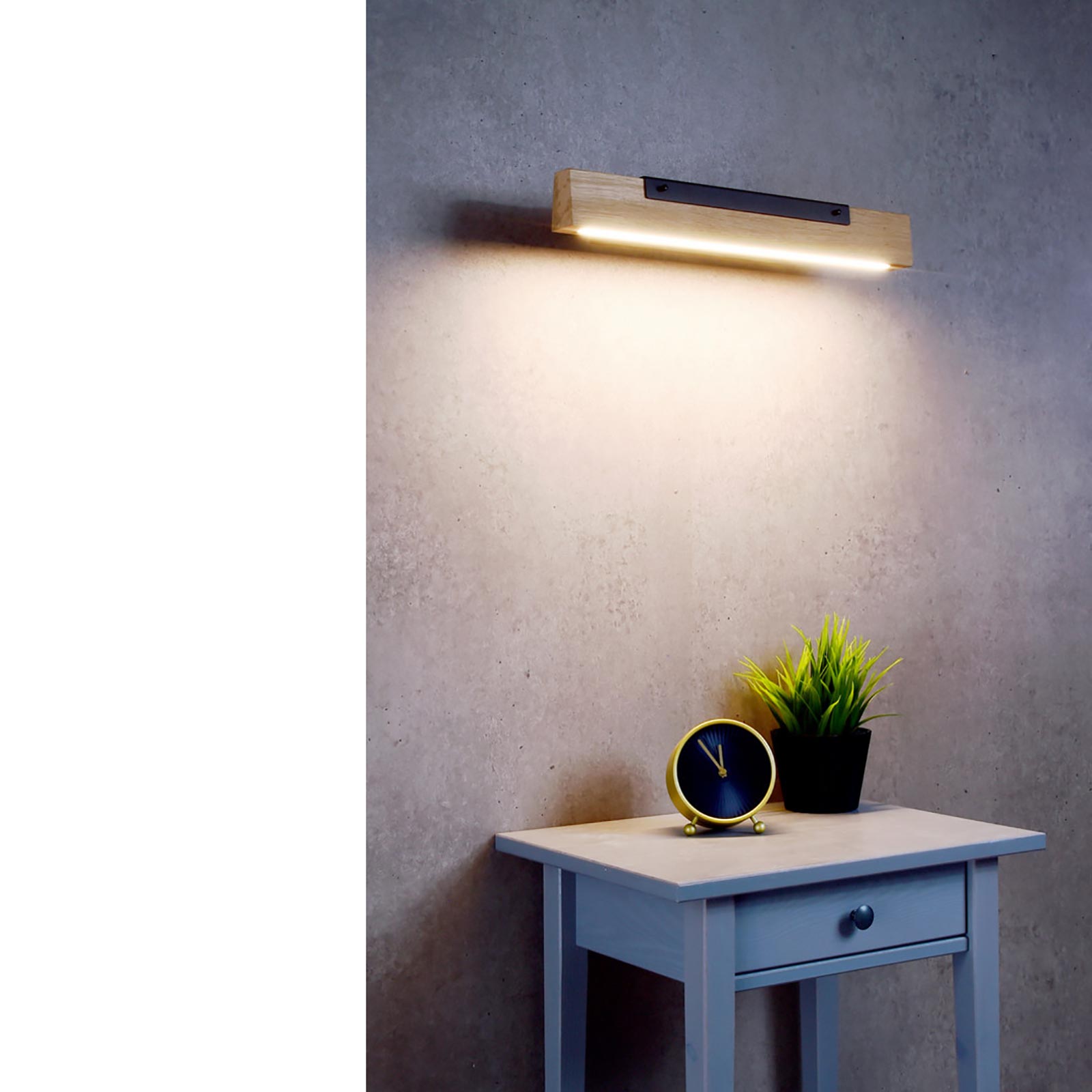 Elegante lampada LED da parete realizzata in legno di quecrcia di alta qualità con materia prima certificata FSC rovere europeo dal design moderno dotata di led integrati smd ad alta luminosità con un consumo energetico ridotto, ideale per uso commerciale ed abitativo in ambienti interni come negozi, uffici, attività commerciali, studi medici, centri commerciali, ed in tutti quei posti dove si vuole illuminare ed arredare i propri ambienti interni. Dimmerabile tramite un sensore tattile al lato della lampada.