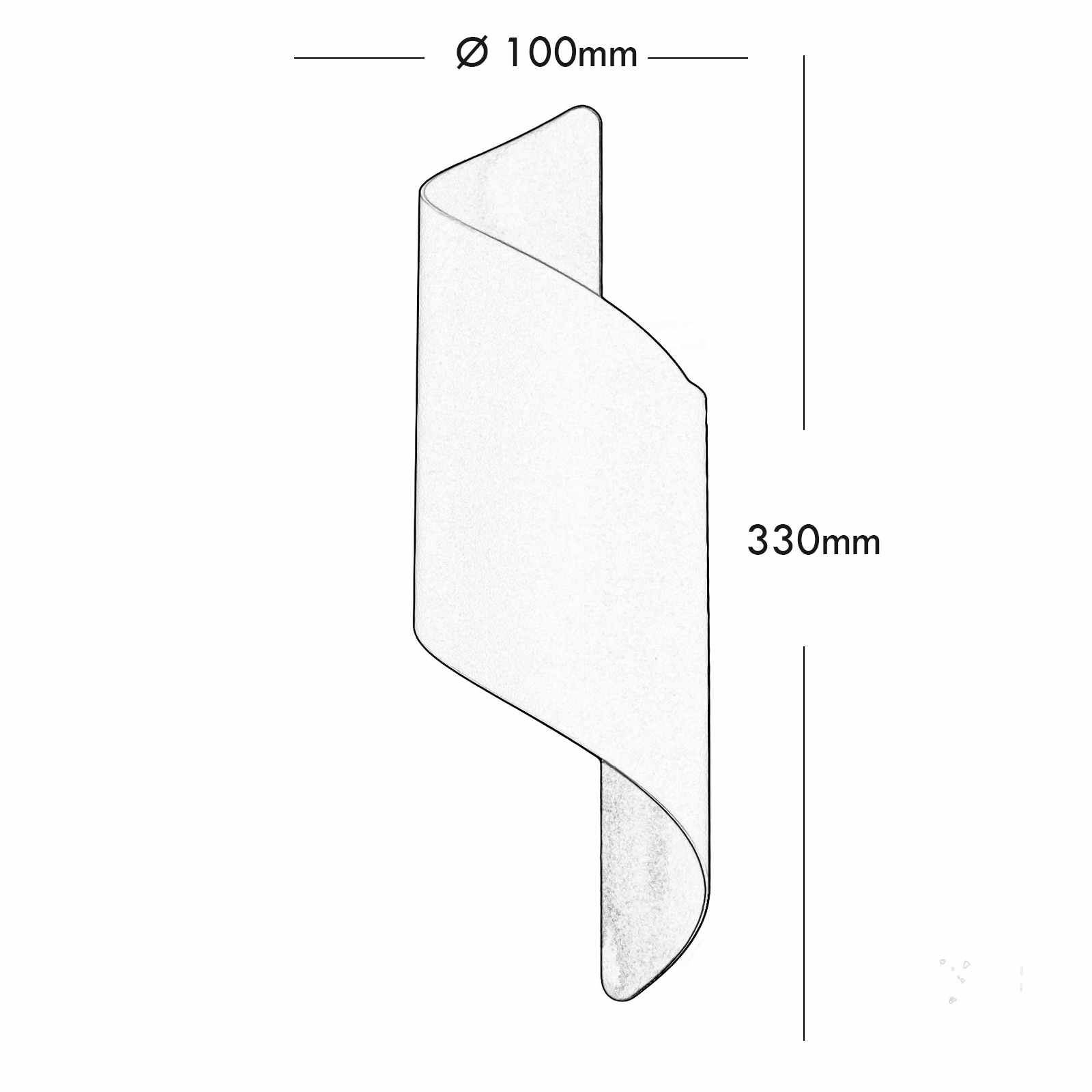 L'applique ha una dimensione di: 330mm x Ø 100mm con una profoindità di 130mm - La base per il fissaggio ha dimensioni: 100mm x 50mm x 25mm