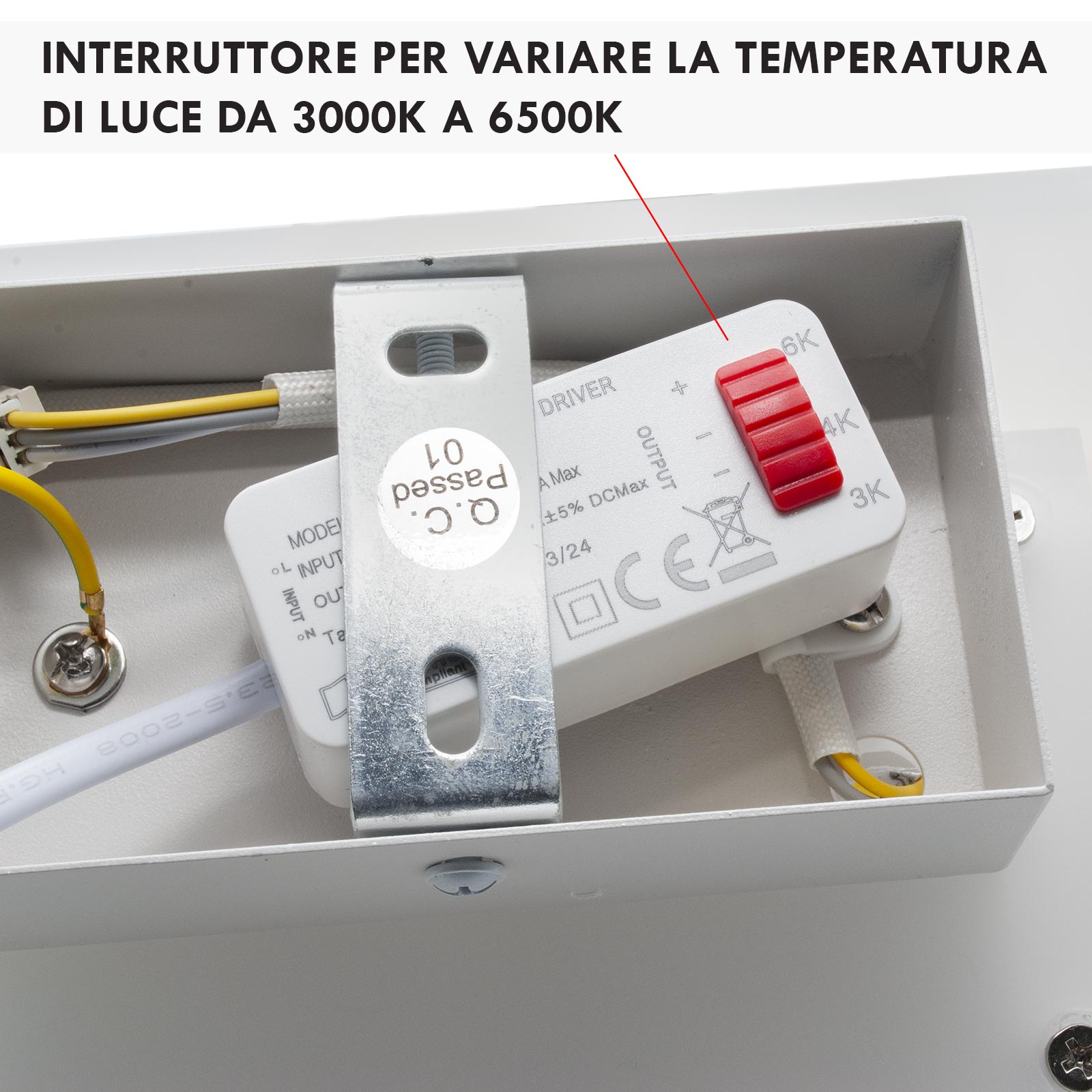 Massima versatilità: Scegli la temperatura di luce più adatta all'ambiente utilizando il pratico selettore posto sul retro che consente di scegliere tra 3 tonalià 3000K luce calda, 4000K luce naturale e 6500K luce fredda.