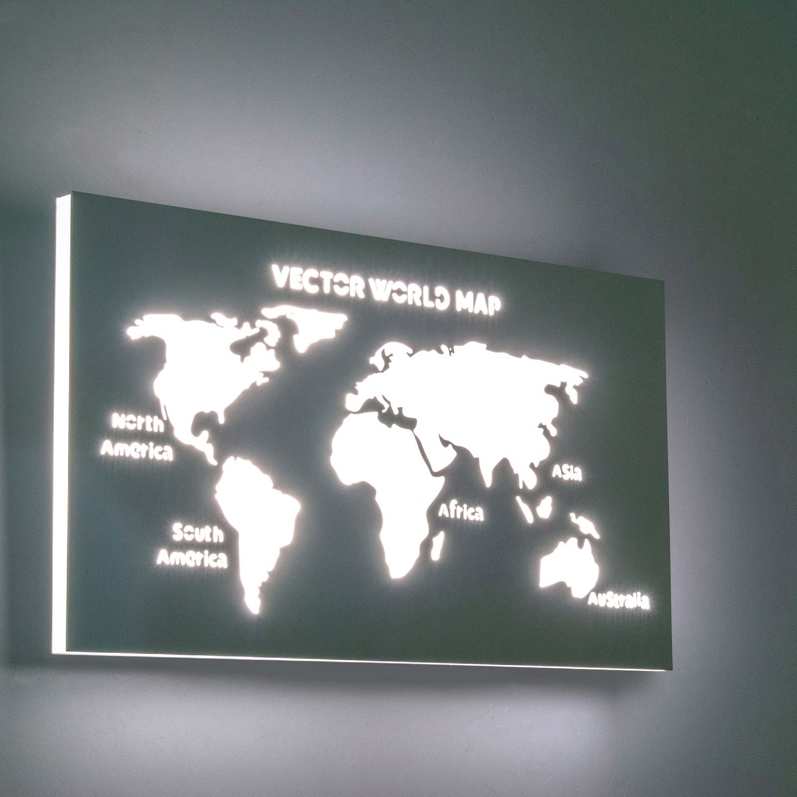 Particolare applique decorativo per interni 3 STEP raffigurante il planisfero ideale per installazioni a parete dotato di LED integrati a basso consumo energetico con potenza 13W, ideale per l'illuminazione e l'abbellimento di ambienti interni come corridoi, scale, ingressi, cucine moderne, soggiorni, salotti, camere da letto, per dare eleganza ad uffici, negozi, attività commerciali in tutti quei posti dove si vuole un prodotto che oltre ad illuminare diventa un complemento d'arredo.
