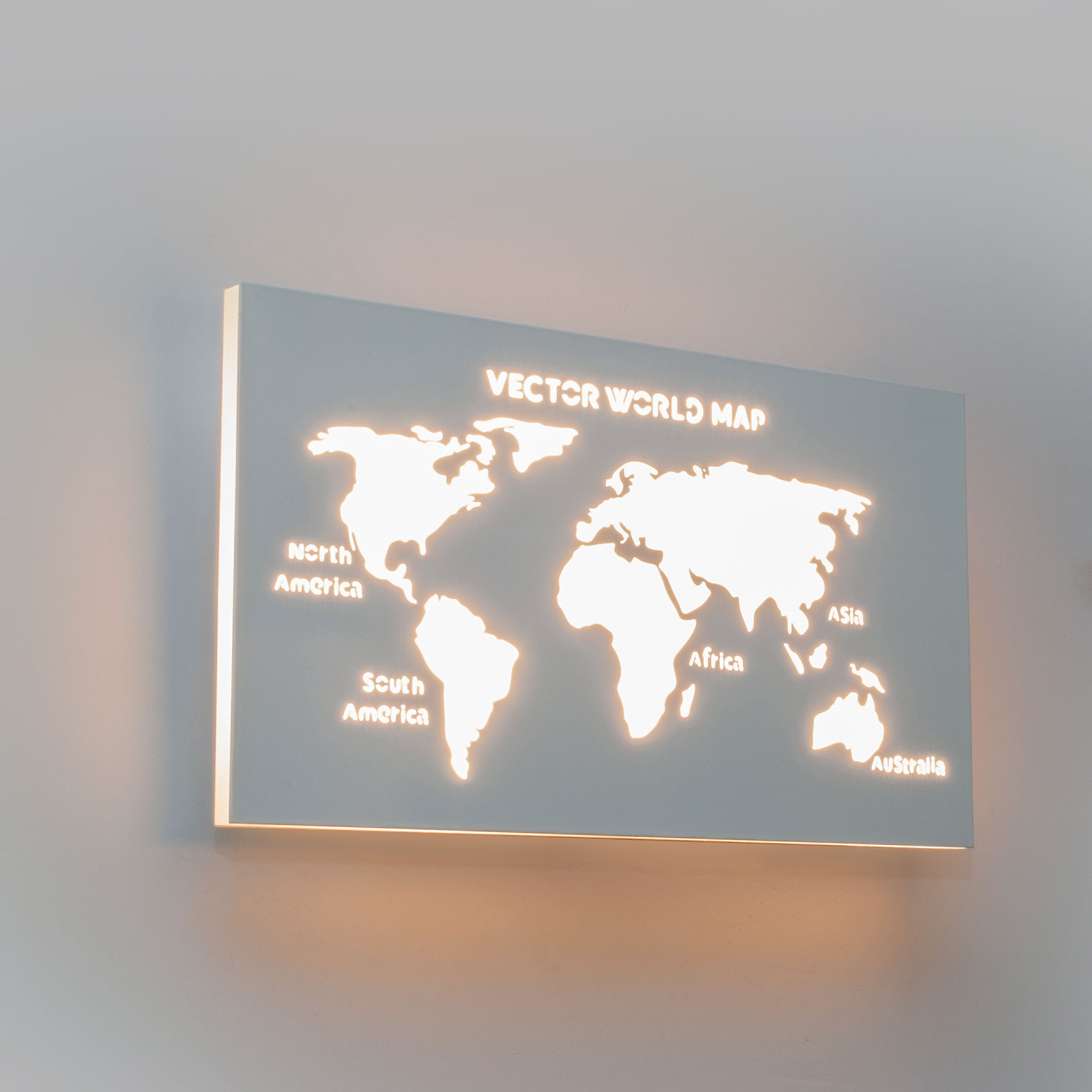 Particolare applique decorativo per interni 3 STEP raffigurante il planisfero ideale per installazioni a parete dotato di LED integrati a basso consumo energetico con potenza 13W, ideale per l'illuminazione e l'abbellimento di ambienti interni come corridoi, scale, ingressi, cucine moderne, soggiorni, salotti, camere da letto, per dare eleganza ad uffici, negozi, attività commerciali in tutti quei posti dove si vuole un prodotto che oltre ad illuminare diventa un complemento d'arredo.