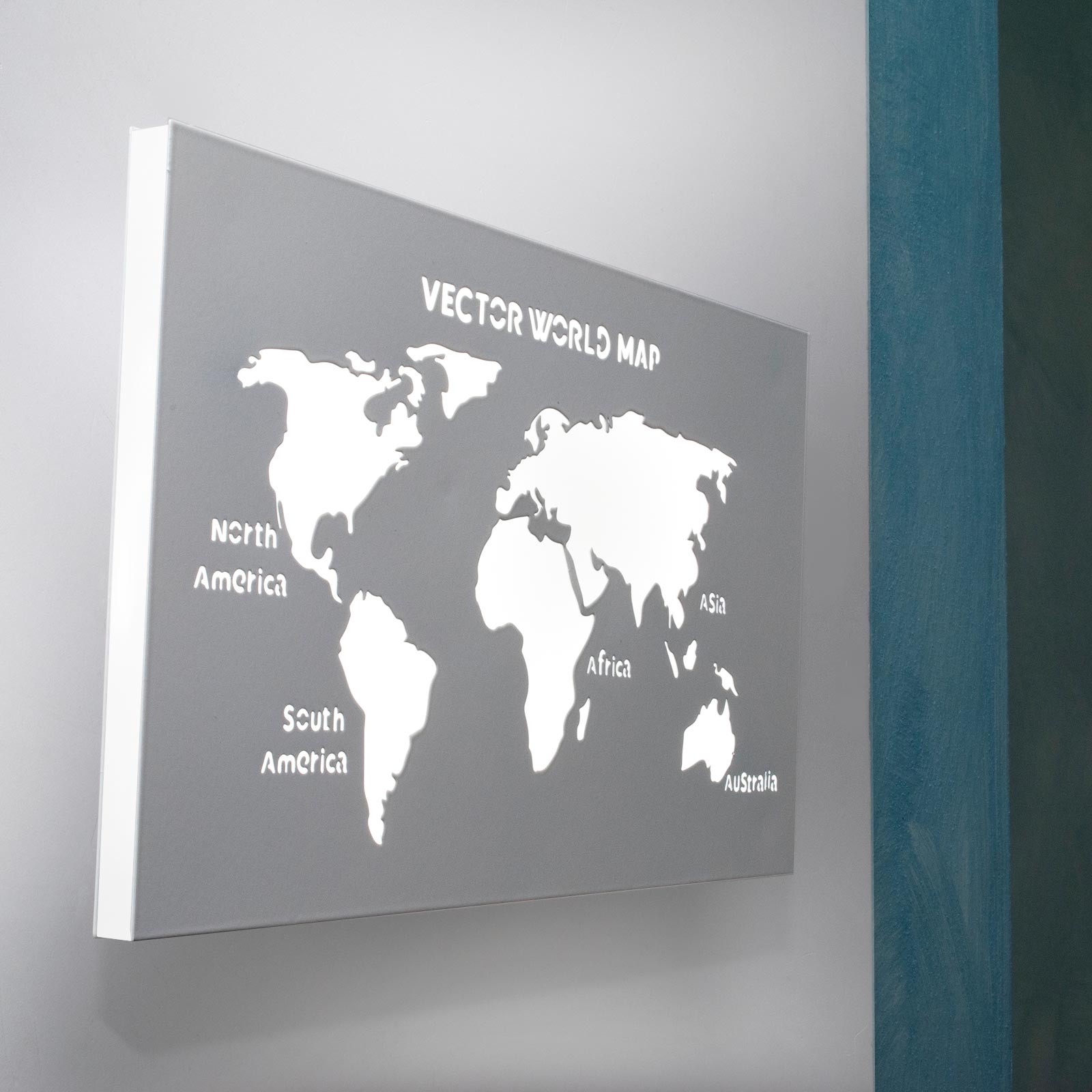 Particolare applique decorativo per interni 3 STEP raffigurante il planisfero ideale per installazioni a parete dotato di LED integrati a basso consumo energetico con potenza 13W, ideale per l'illuminazione e l'abbellimento di ambienti interni come corridoi, scale, ingressi, cucine moderne, soggiorni, salotti, camere da letto, per dare eleganza ad uffici, negozi, attività commerciali in tutti quei posti dove si vuole un prodotto che oltre ad illuminare diventa un complemento d'arredo.