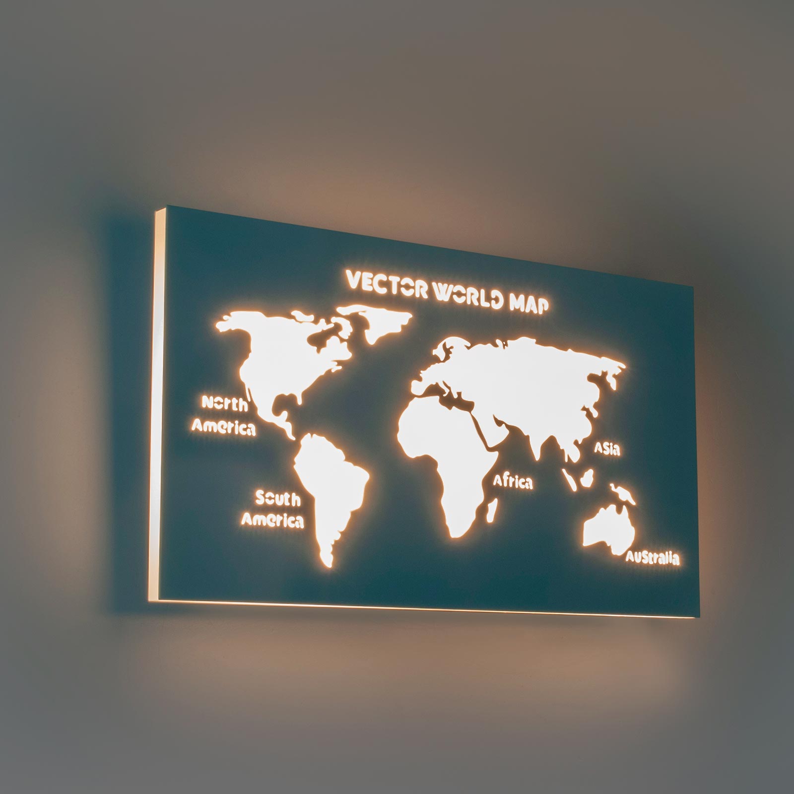 Particolare applique decorativo per interni 3 STEP raffigurante il planisfero ideale per installazioni a parete dotato di LED integrati a basso consumo energetico con potenza 13W, ideale per l'illuminazione e l'abbellimento di ambienti interni come corridoi, scale, ingressi, cucine moderne, soggiorni, salotti, camere da letto, per dare eleganza ad uffici, negozi, attività commerciali in tutti quei posti dove si vuole un prodotto che oltre ad illuminare diventa un complemento d'arredo.