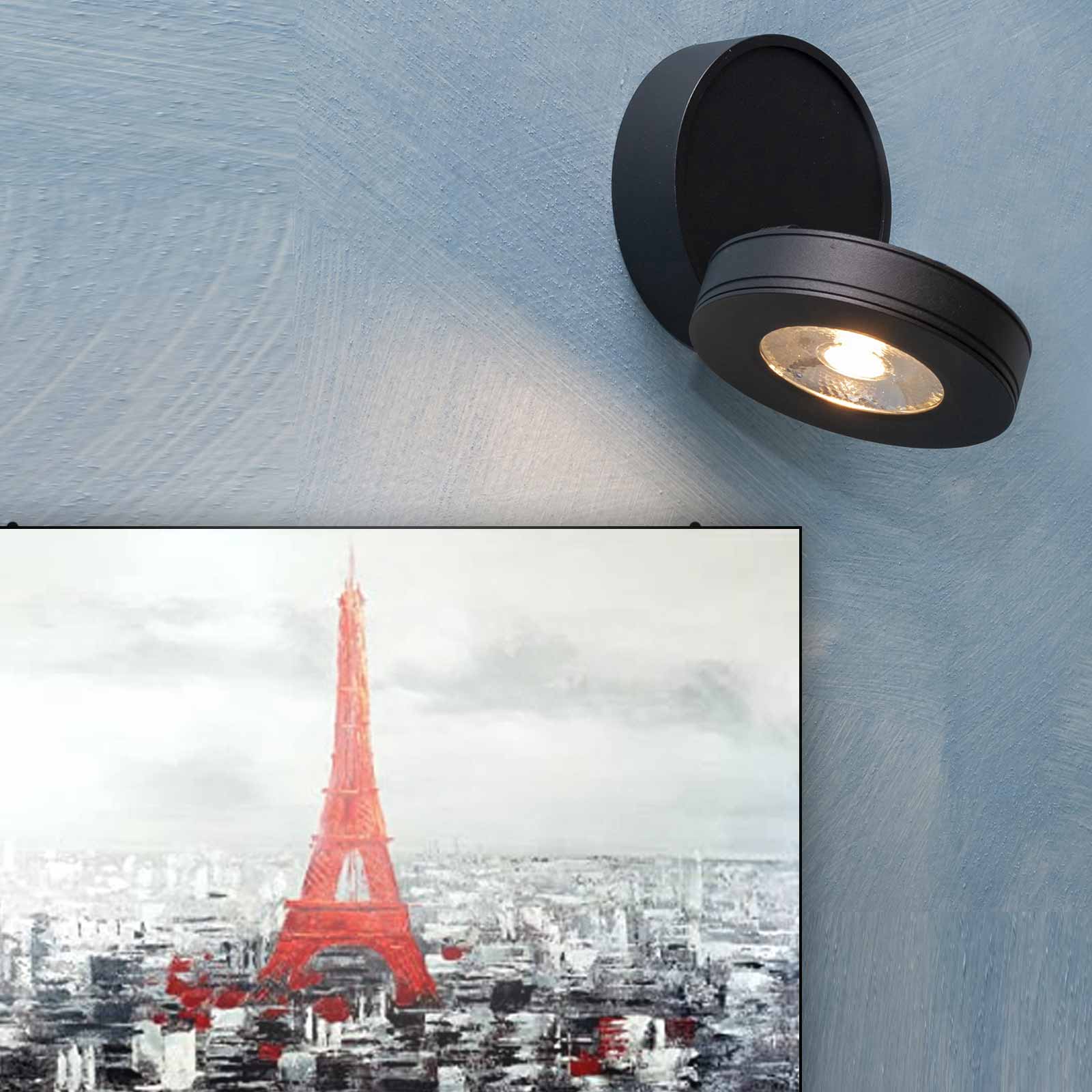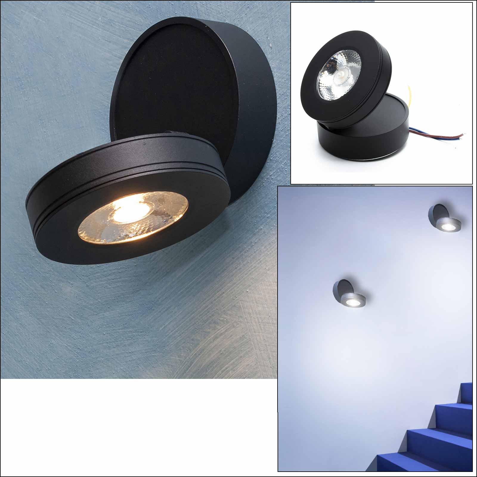 Elegante e particolare lampada LED dal design ultra moderno realizzato in alluminio pressofuso disponibile di colore bianco o nero dotato di diffusore a cerchio orientabile in tutte le direzioni grazie al pratico sistema che consente al diffusore di girare sulla base di fissaggio. Questo faretto per interni ha un diffusore inclinabile fino a 90 gradi, questo per direzionare la luce secondo le proprie esigenze.
