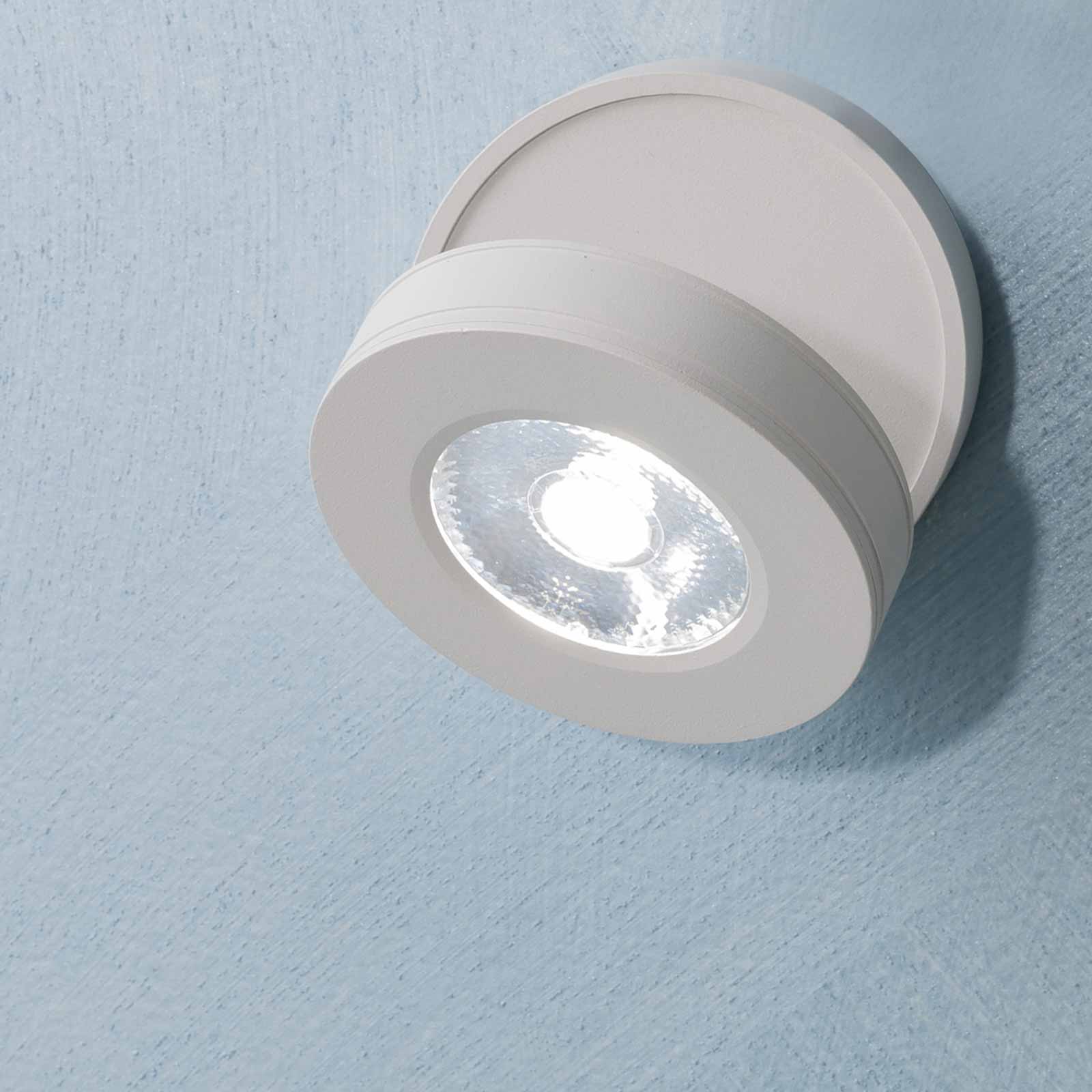 Elegante e particolare lampada LED dal design ultra moderno realizzato in alluminio pressofuso disponibile di colore bianco o nero dotato di diffusore a cerchio orientabile in tutte le direzioni grazie al pratico sistema che consente al diffusore di girare sulla base di fissaggio. Questo faretto per interni ha un diffusore inclinabile fino a 90 gradi, questo per direzionare la luce secondo le proprie esigenze.