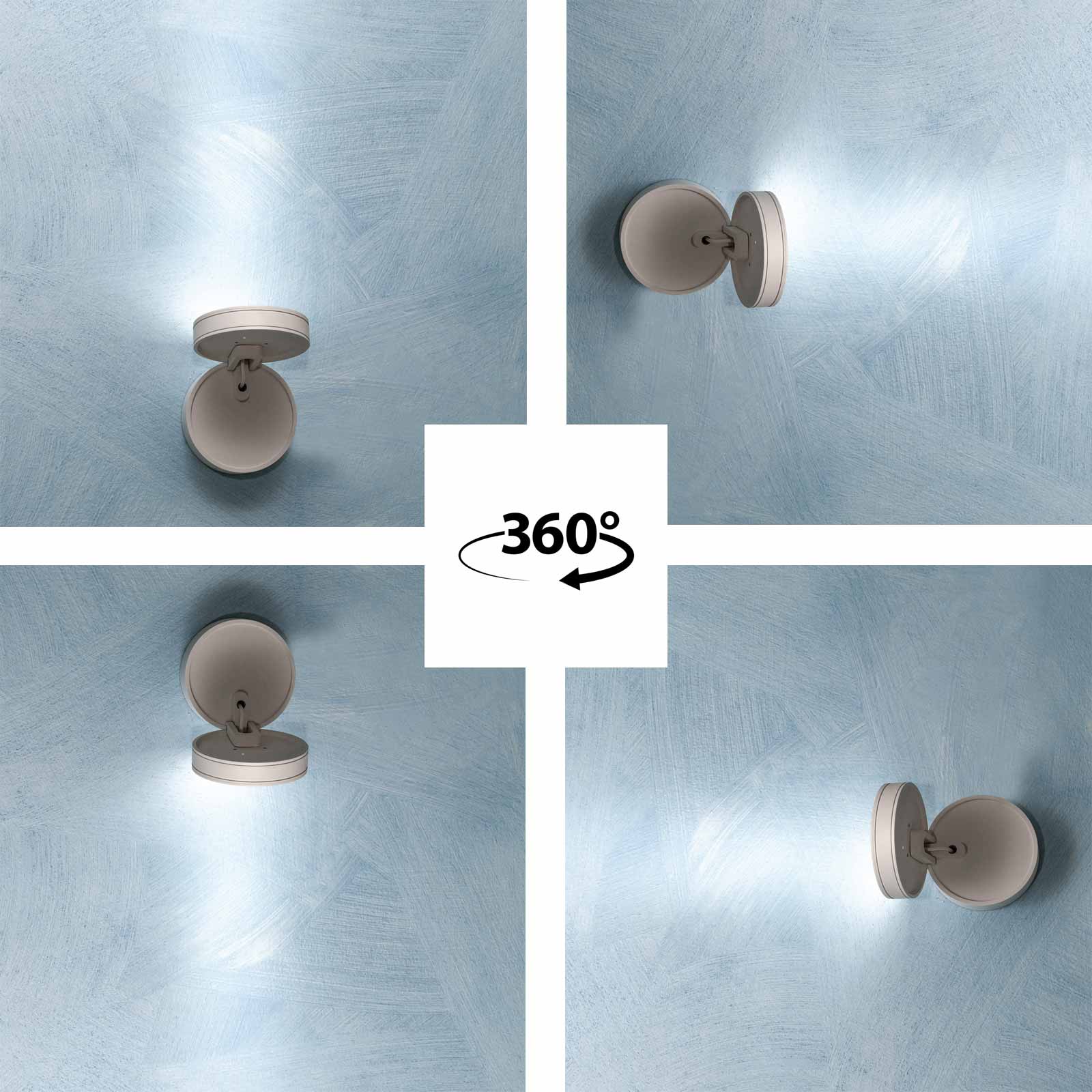 Il fissaggio a parete avviene tramite la piastra circolare con filettatura, sulla quale una volta fissata a parete va avvitata la lampada, nascondendo così led viti di fissaggio per un'estetica migliore. Disponibile con temperatura luce 3000K luce calda, 4000K luce naturale, 6500K luce fredda.