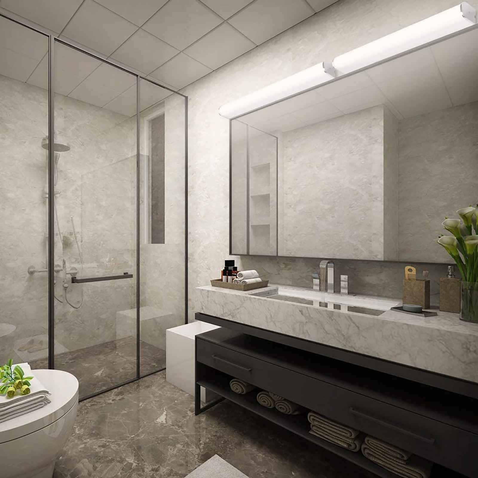 L'applique è molto versatile, può essere installato in diversi modi: a parete in modo orizzontale o verticale, a soffitto, ha una lunghezza di 60cm con un angolo di luce diffusa 120 gradi. Inoltre creando un ponte elettrico è possibile l'installazione di più lampade in serie per specchi molto grandi. Ha una buona luminosità, non abbaglia la vista ed un basso consumo energetico.