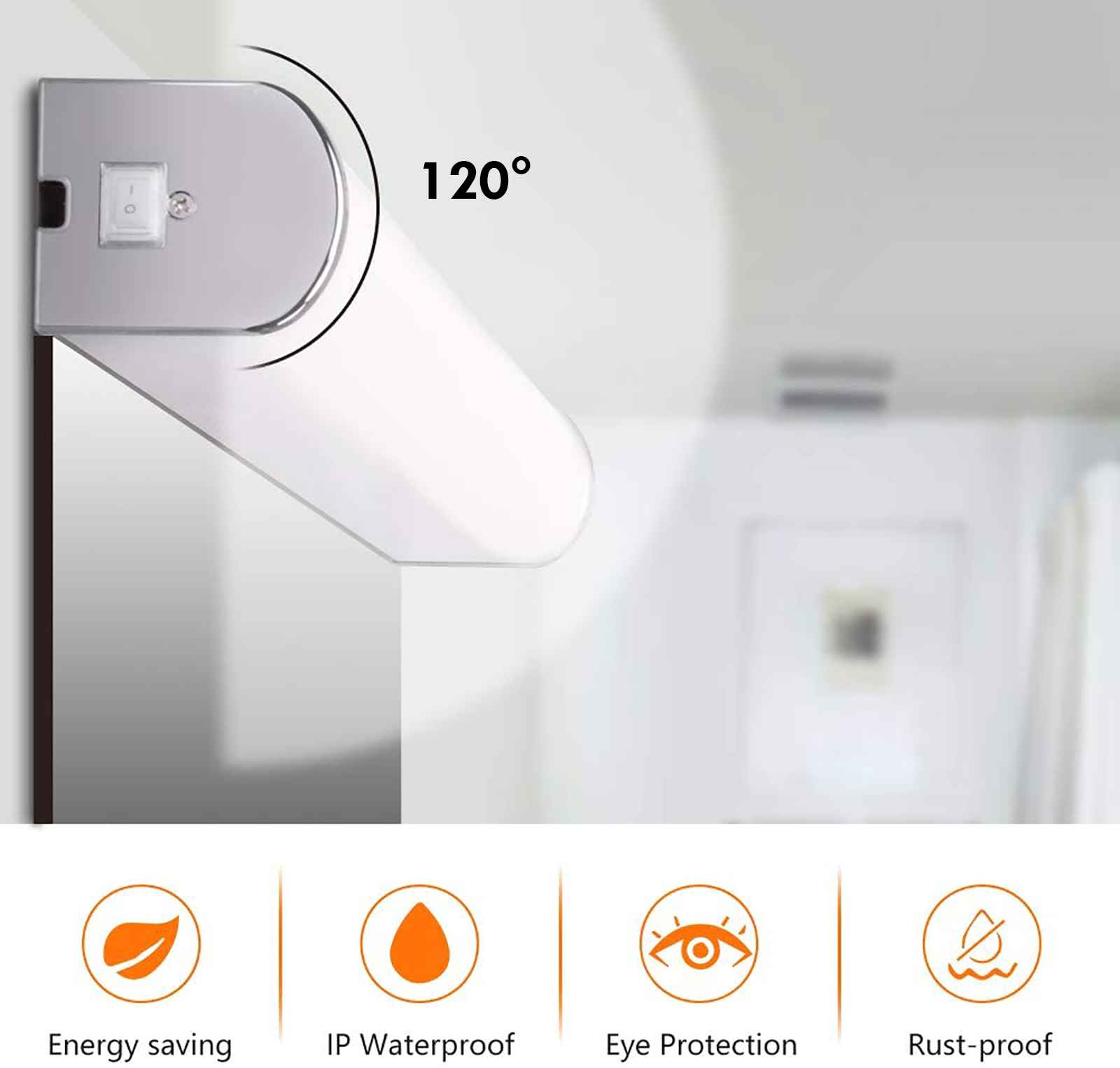 L'applique è molto versatile, può essere installato in diversi modi: a parete in modo orizzontale o verticale, a soffitto, ha una lunghezza di 60cm con un angolo di luce diffusa 120 gradi. Inoltre creando un ponte elettrico è possibile l'installazione di più lampade in serie per specchi molto grandi. Ha una buona luminosità, non abbaglia la vista ed un basso consumo energetico.