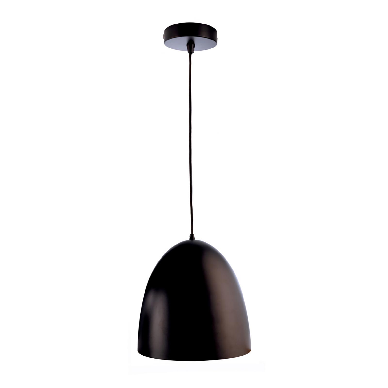 Lampadario pendente a forma di campana dal design moderno realizzato in metallo di alta qualità disponibile di colore nero, adatto a tutti i tipi di arredamento dal moderno al classico. Dotato di attacco E27 compatibile con lampade e lampadine con attacco E27 con potenza massima 40W. Ideale per l'illuminazione interna di banconi di bar, ristoranti, pizzerie, interni di abitazioni come cucine, soggiorni, per dare un tocco di eleganza al proprio ufficio.