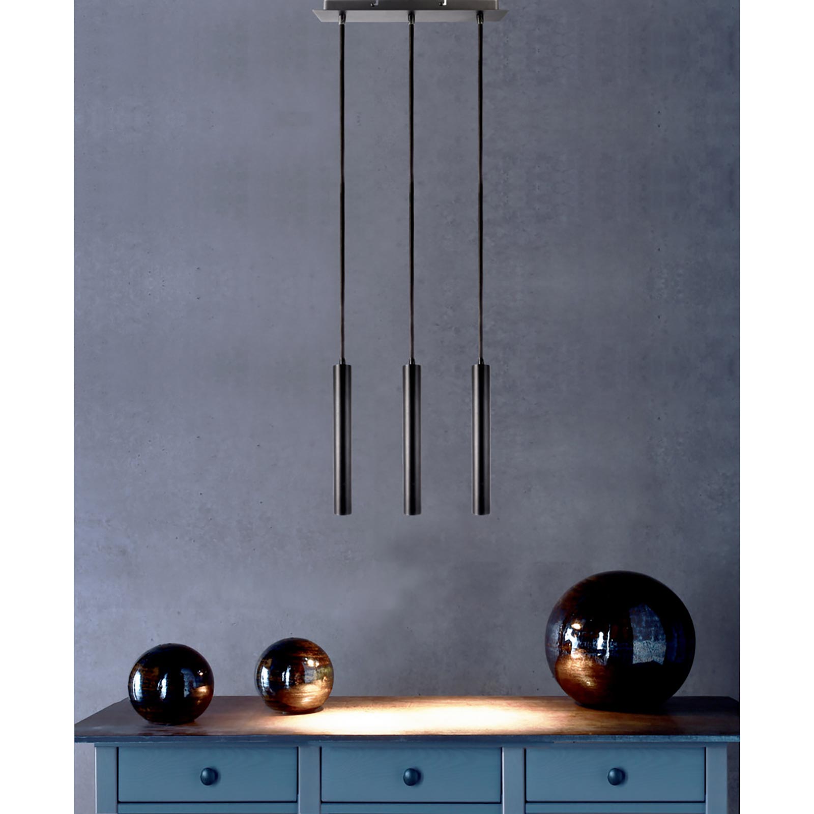 Lampada a sospensione, moderna ed elegante adatta per installazioni a soffitto composta da 3 pendenti di forma cilindrica dal design slim disponibile in due colori: bianco e nero, realizzata in alluminio di qualità superiore. Dotata di 3 LED COB integrati di ultima generazione a basso consumo energetico, con potenza 15W. Disponibile con temperaura di luce: 2700K luce calda. Perfetta per l'illuminazione di snack bar, cucine, soggiorni, camere da letto, ideale anche per bar, caffè e ristoranti, pizzerie ed in tutti quei posti dove si vuole dare un tocco di eleganza all'ambiente.
