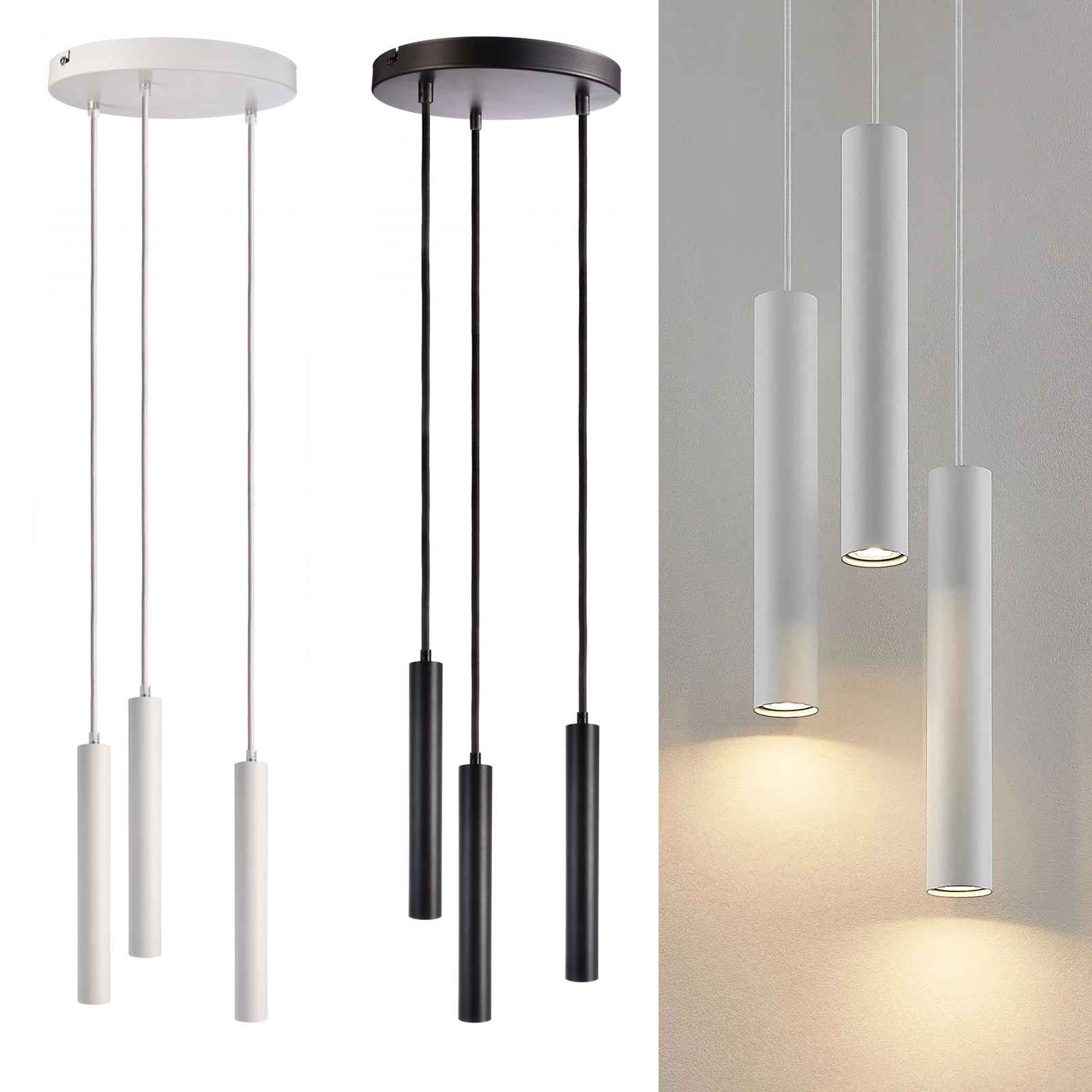 Lampadario a sospensione, moderno ed elegante adatta per installazioni a soffitto composta da 3 pendenti di forma cilindrica dal design slim disponibile in due colori: bianco e nero, realizzata in alluminio di qualità superiore. Dotata di 3 LED COB integrati di ultima generazione a basso consumo energetico, con potenza 15W. Disponibile con temperaura di luce: 2700K luce calda. Perfetta per l'illuminazione di snack bar, cucine, soggiorni, camere da letto, ideale anche per bar, caffè e ristoranti, pizzerie ed in tutti quei posti dove si vuole dare un tocco di eleganza all'ambiente.