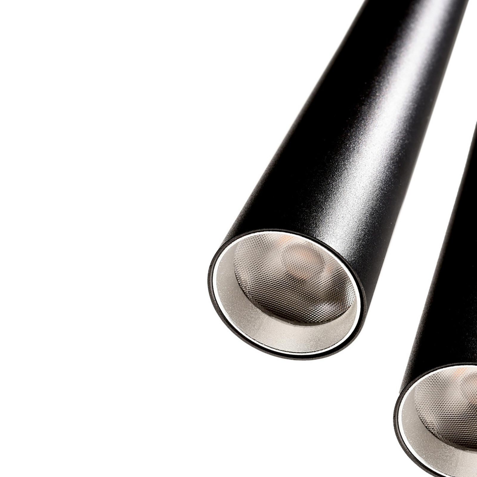 Lampadario a sospensione, moderno ed elegante adatta per installazioni a soffitto composta da 3 pendenti di forma cilindrica dal design slim disponibile in due colori: bianco e nero, realizzata in alluminio di qualità superiore. Dotata di 3 LED COB integrati di ultima generazione a basso consumo energetico, con potenza 15W. Disponibile con temperaura di luce: 2700K luce calda. Perfetta per l'illuminazione di snack bar, cucine, soggiorni, camere da letto, ideale anche per bar, caffè e ristoranti, pizzerie ed in tutti quei posti dove si vuole dare un tocco di eleganza all'ambiente.