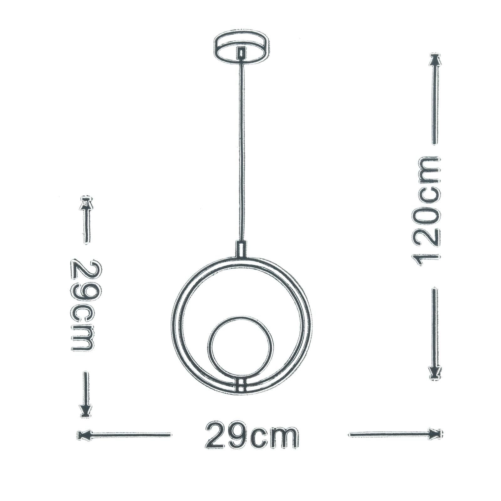 Dimensione totale della lampada: 1200mm x Ø 290mm - Altezza della sospensione: 1000mm (Altezza regolabile) - Dimensione rosetta di fissaggio a soffitto: 100mm x 25mm