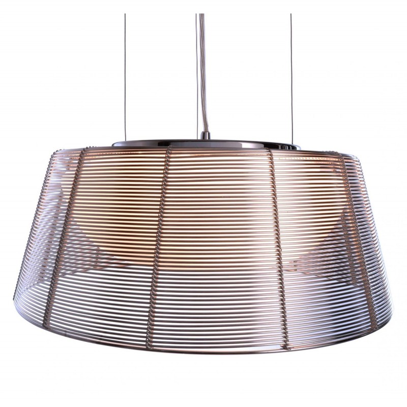 Lampadario a sospensione di forma circoale realizzato con filo metallico intrecciato che consente di filtrare la luce generando un effetto molto gradevole, ideale per l'illuminazione interna di ambienti moderni per sale da pranzo, cucine, bistrot, caffè, ristoranti ed in tutti quei posti dove oltre ad illuminare si vuole arredare con stile. Realizzato in metallo di alta qualità integra un paralume opaco che diffonde la luce in modo ottimale senza abbagliare la vista.