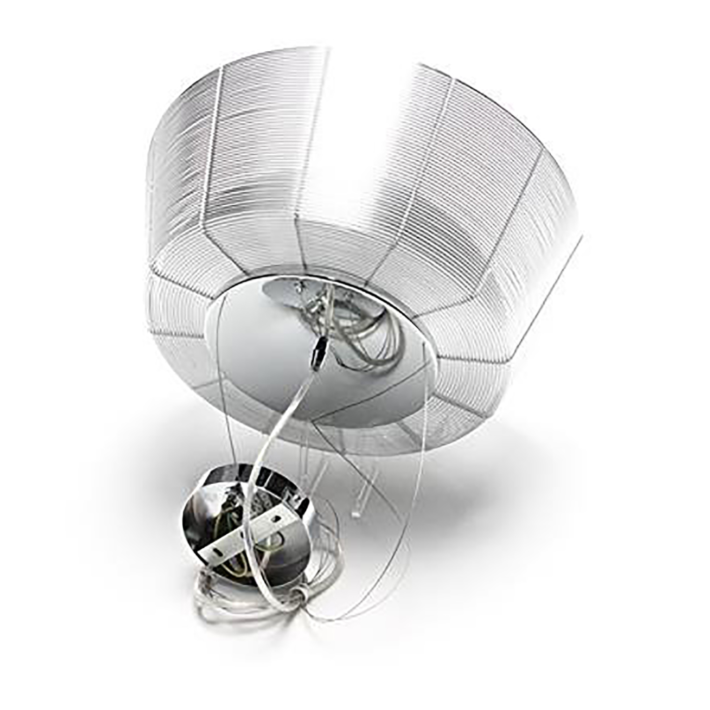 Lampadario a sospensione di forma circoale realizzato con filo metallico intrecciato che consente di filtrare la luce generando un effetto molto gradevole, ideale per l'illuminazione interna di ambienti moderni per sale da pranzo, cucine, bistrot, caffè, ristoranti ed in tutti quei posti dove oltre ad illuminare si vuole arredare con stile. Realizzato in metallo di alta qualità integra un paralume opaco che diffonde la luce in modo ottimale senza abbagliare la vista.