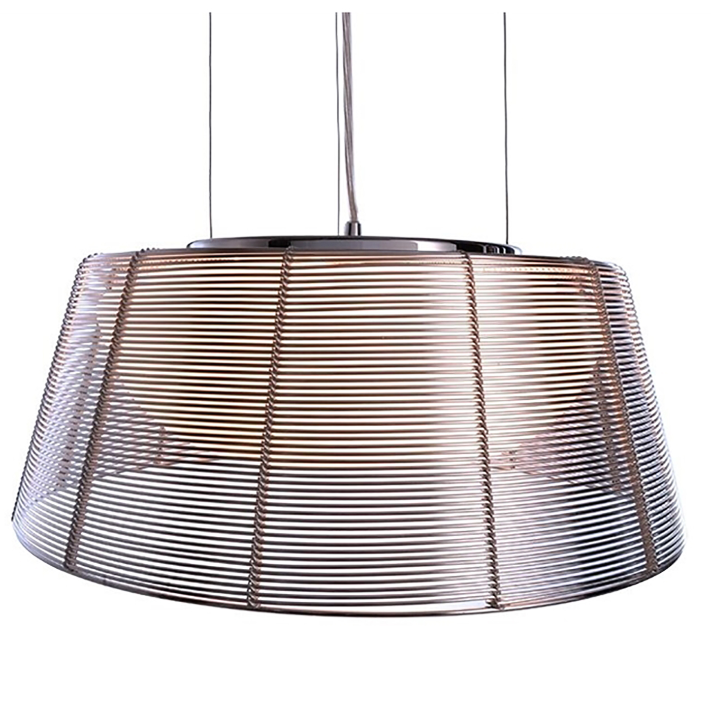 Lampadario a sospensione di forma circoale realizzato con filo metallico intrecciato che consente di filtrare la luce generando un effetto molto gradevole, ideale per l'illuminazione interna di ambienti moderni per sale da pranzo, cucine, bistrot, caffè, ristoranti ed in tutti quei posti dove oltre ad illuminare si vuole arredare con stile. Realizzato in metallo di alta qualità integra un paralume opaco che diffonde la luce in modo ottimale senza abbagliare la vista.