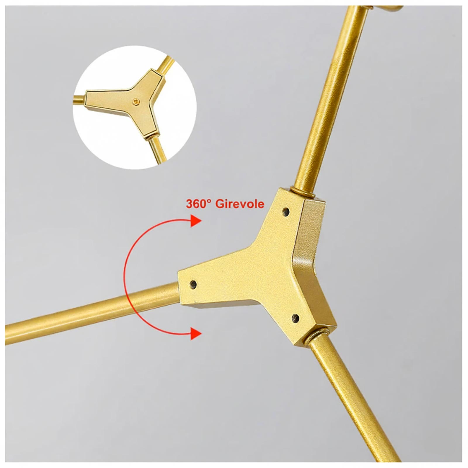 Il lampadario moderno a sospensione con 6 luci E27 presenta una struttura in metallo verniciato color bronzo dorato, progettata per arredare e illuminare ambienti interni con uno stile contemporaneo e raffinato. Grazie al design simmetrico e lineare, si integra facilmente in spazi come cucine, soggiorni, camere da letto, uffici, sale da pranzo o ambienti commerciali.