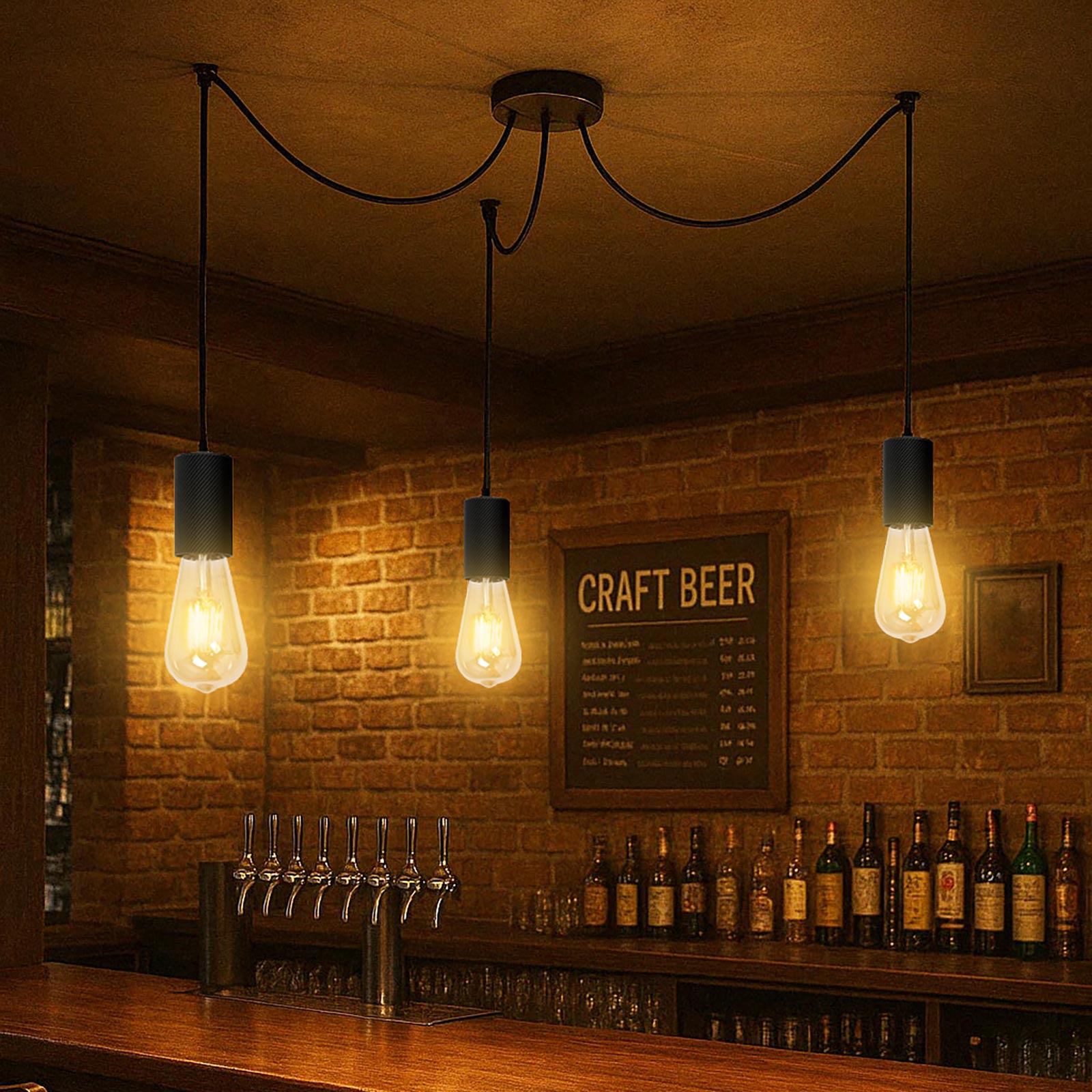 Porta un tocco di stile industriale e contemporaneo nei tuoi ambienti interni con questo elegante lampadario a sospensione con 3 attacchi E27. La struttura minimalista con base centrale rotonda e cavi lunghi regolabili consente di creare configurazioni personalizzate, ideali per illuminare tavoli da pranzo, isole cucina, soggiorni, ideale anche per l'illuminazione di pub, bar, pizzerie, taverne.
