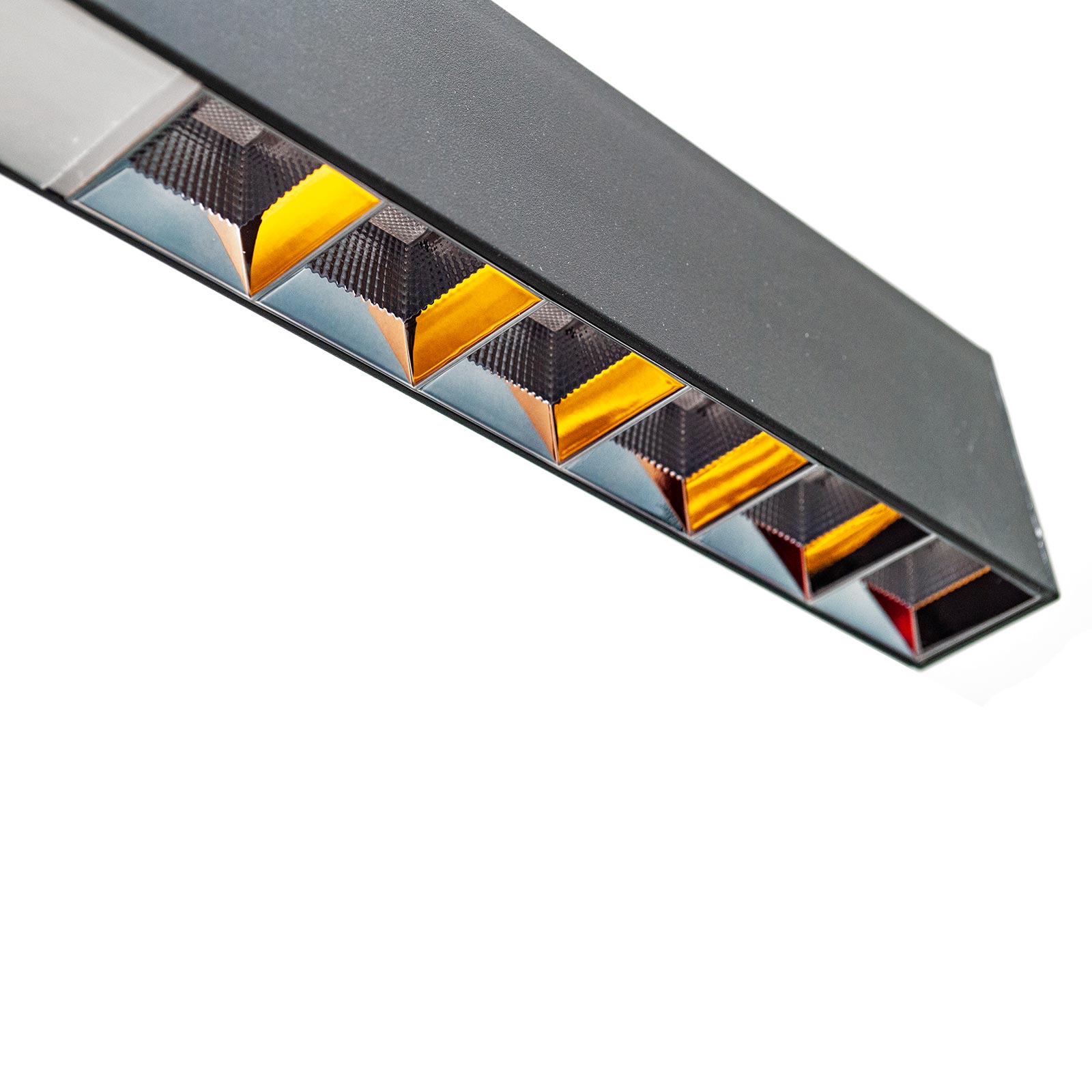 Elegante e particolare lampada LED CCT a sospensione realizzata in alluminio di colore nero dotata di LED integrati ad alta efficienza energetica, ideale sia per uso commerciale in uffici, attività commerciali, studi medici, centri commerciali, sale di attesa, sia in ambito domestico per ambienti moderni come cucine- soggiorni ed in tutti quei posti dove si vuole illuminare ed arredare i propri ambienti con una lampada dal design moderno e professionale.