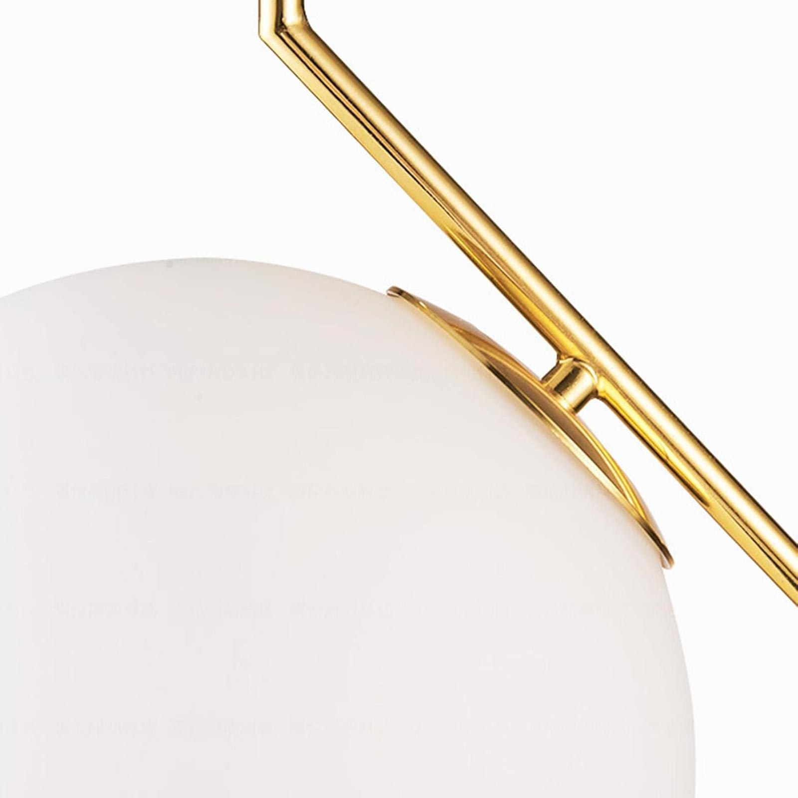 Lampadario pendente G9 con finitura in bronzo, progettato per arredare e illuminare ambienti interni come cucina, soggiorno, camera da letto, ristoranti o aree studio. La lampada a sospensione presenta un design moderno e minimale con struttura in alluminio verniciato bronzo dorato e paralume sferico in vetro bianco opaco, che diffonde una luce morbida e uniforme senza abbagliare.