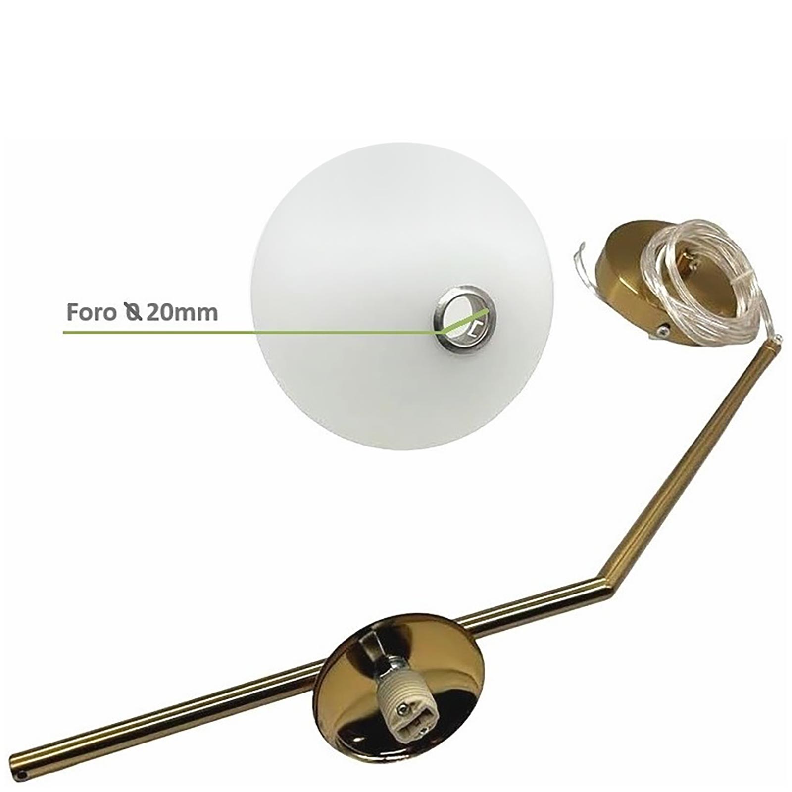 Il diffusore in vetro ha l'attacco a vite è consente un facile inserimento della lampada, il diffusore supporta lampade con diametro massimo di 20mm.