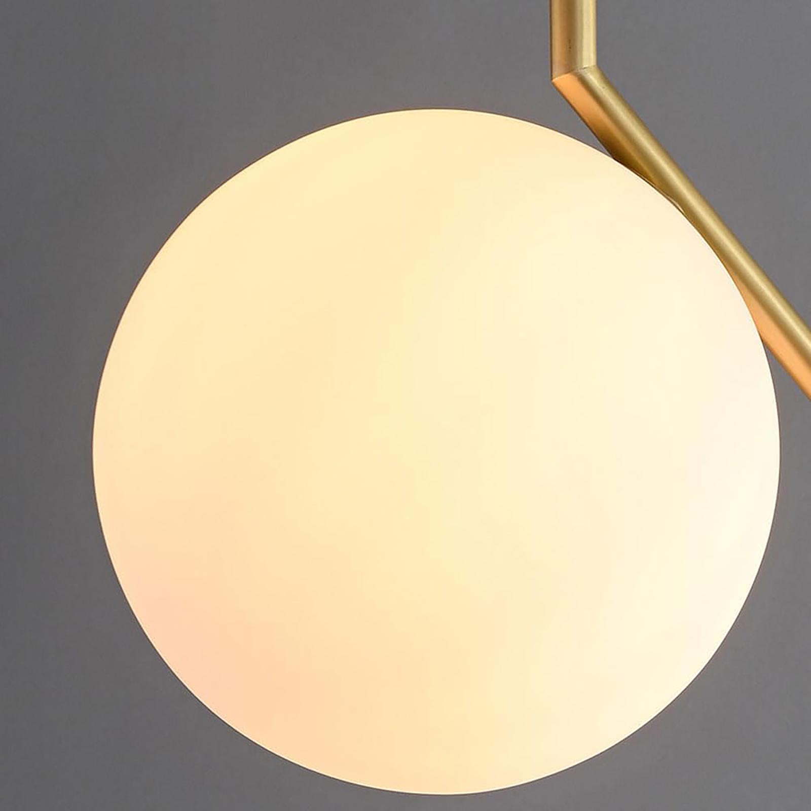 Lampadario pendente G9 con finitura in bronzo, progettato per arredare e illuminare ambienti interni come cucina, soggiorno, camera da letto, ristoranti o aree studio. La lampada a sospensione presenta un design moderno e minimale con struttura in alluminio verniciato bronzo dorato e paralume sferico in vetro bianco opaco, che diffonde una luce morbida e uniforme senza abbagliare.