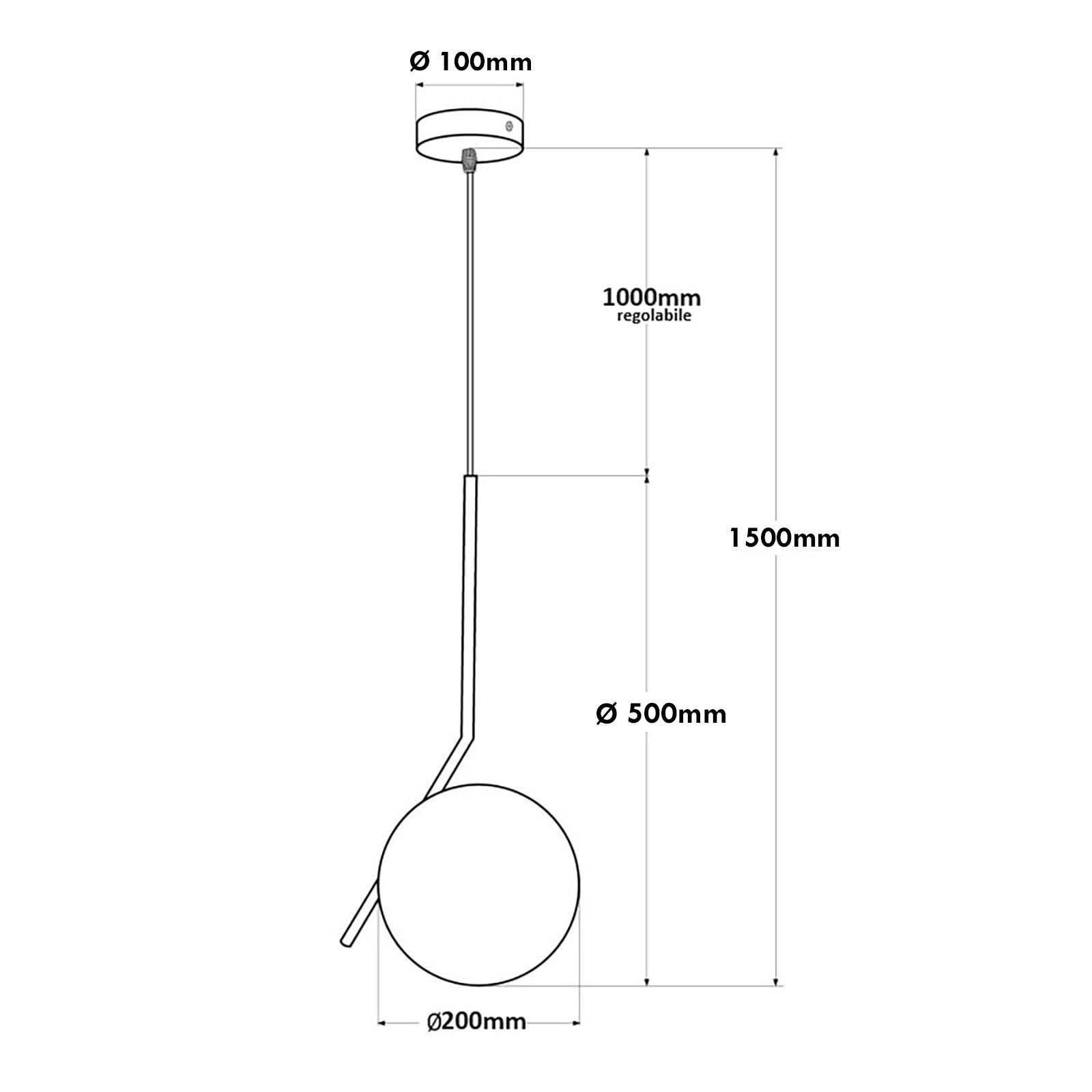 Dimensione della lampada: 500mm x Ø 200mm - Altezza della sospensione: 1000mm (Altezza regolabile) - Dimensione rosetta di fissaggio a soffitto: Ø 100mm x 20mm