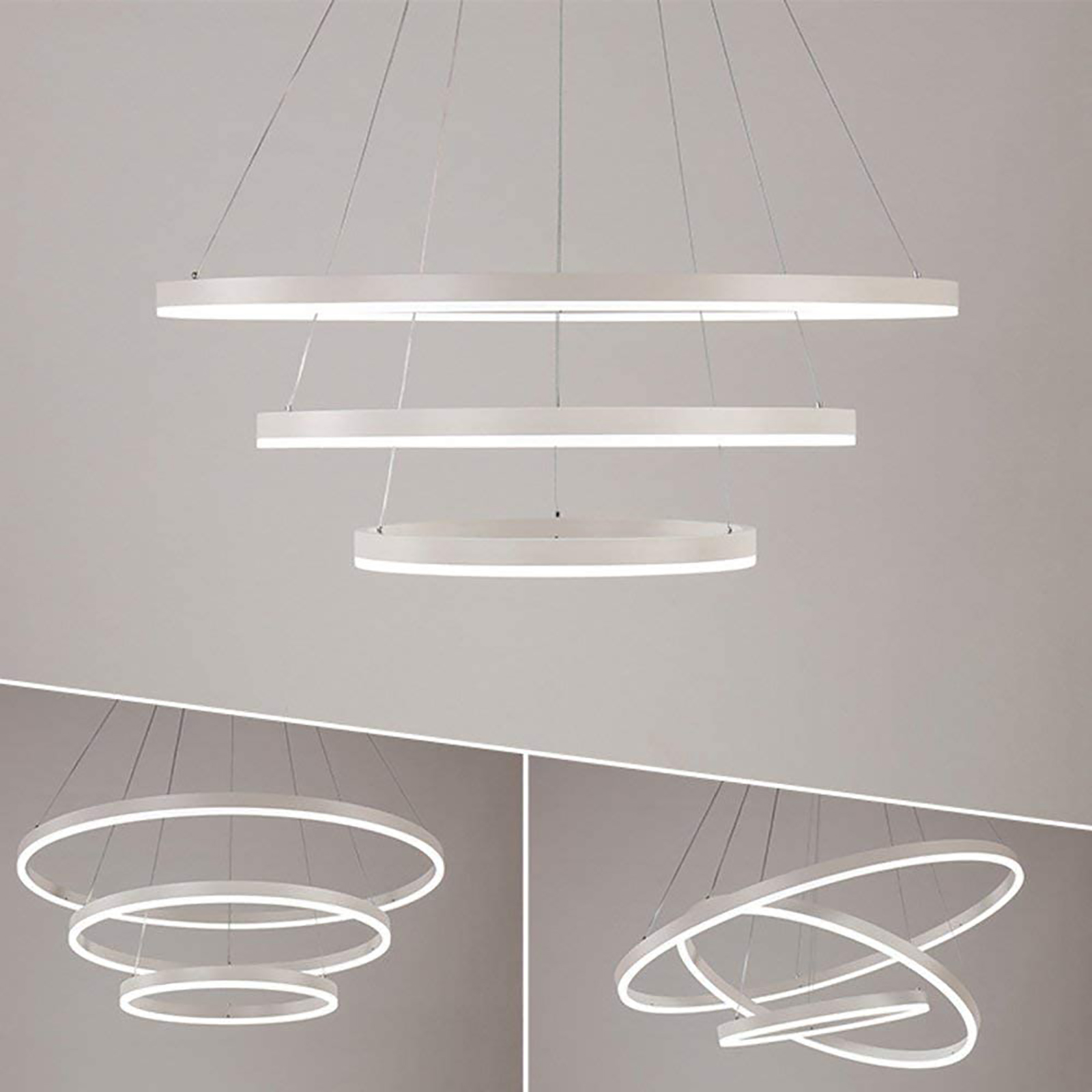 Illumina ed arreda i tuoi ambienti interni con questo particolare ed elegante lampadario da soffitto dal design moderno e versatile composto da 3 cerchi di misure diverse per illuminare e decorare ambienti interni creando un effetto ottico particolare. Questo lampadario integra la tecnologia 3 STEP che consente di scegliere la temperatura di luce, adatta per l'ambiente, semplicemente spegnendo ed accendendo l'interruttore della luce.