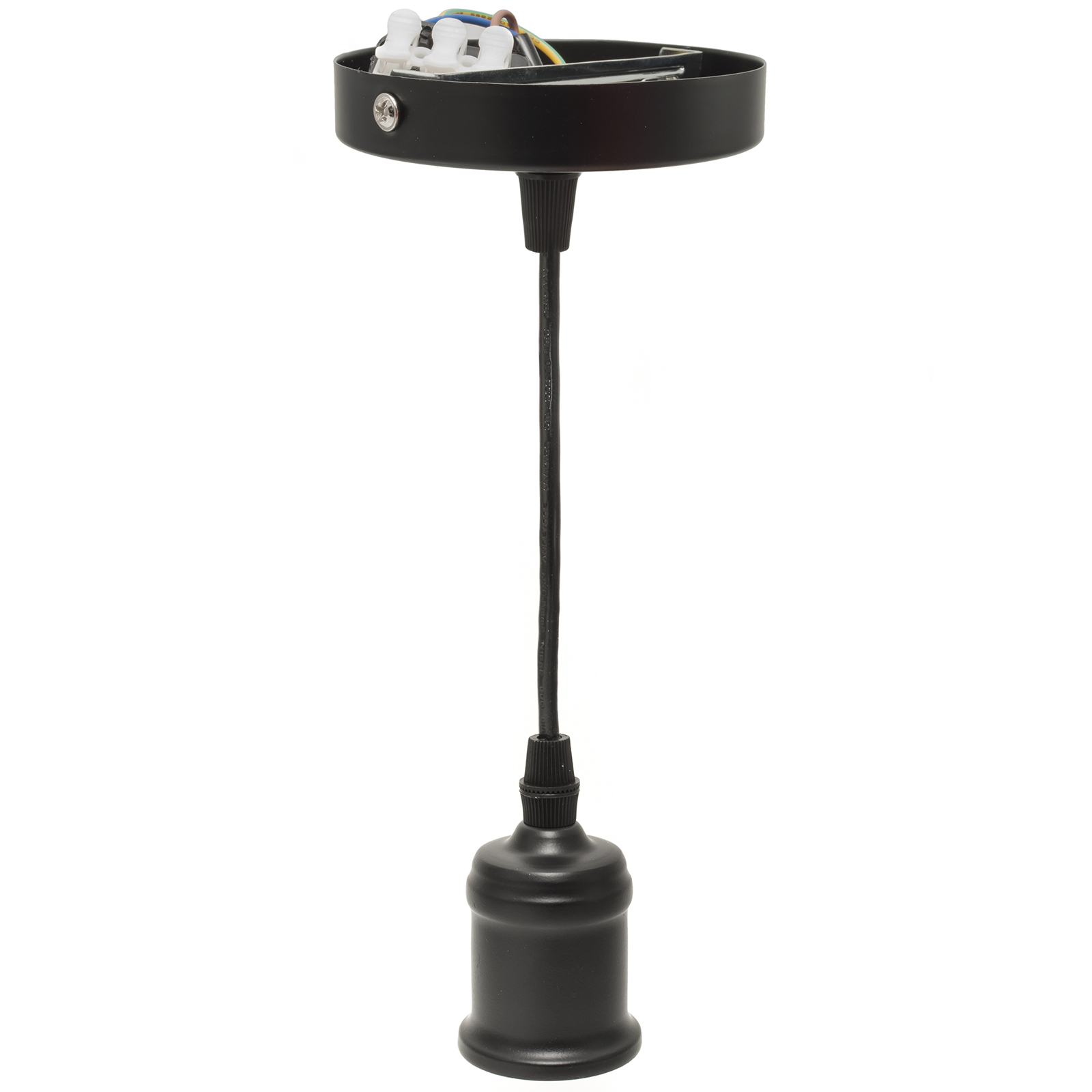 Dotato di portalampade E27 compatibile con la maggior parte di lampade E27, l'assenza di diffusore consente un'illuminazione quasi a 360 gradi. Completo di rosetta copricavi in metallo con staffa interna per il fissaggio a soffitto, il cavo ha una lunghezza regolabile seconde le esigenze.