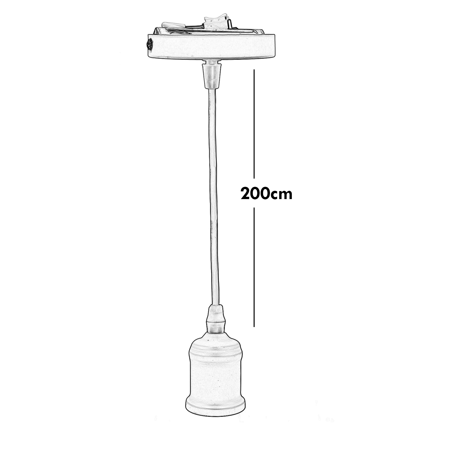 Lunghezza del pendente 200cm - Diametro della rosetta: 10cm x 2cm (altezza) - Dimensioni del portalampada: 6.5cm x Ø 5cm