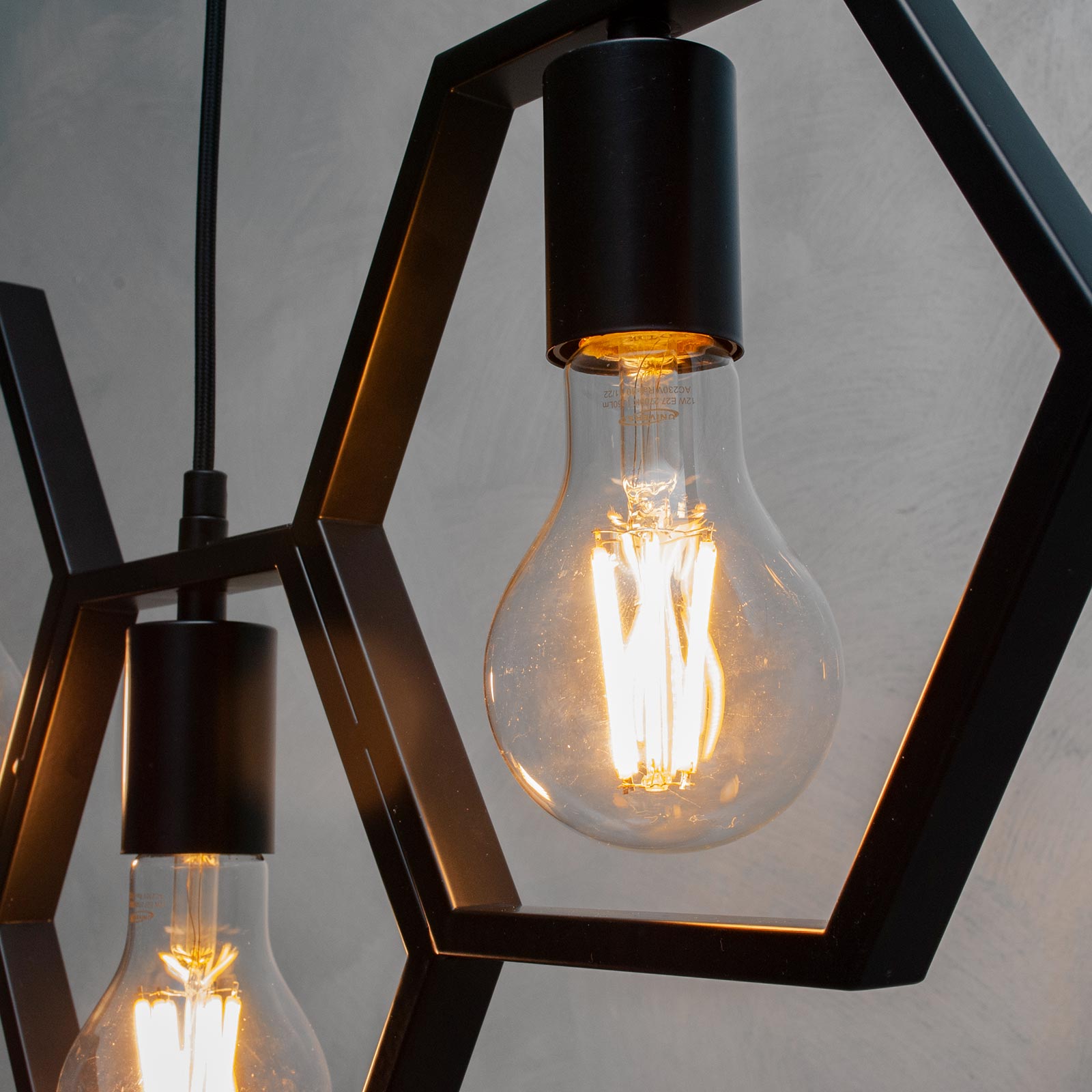 Lampadario sospensione esagonale LED 60W E27 pendente geometrico industriale nero pub ristorante tavolo cucina 230V