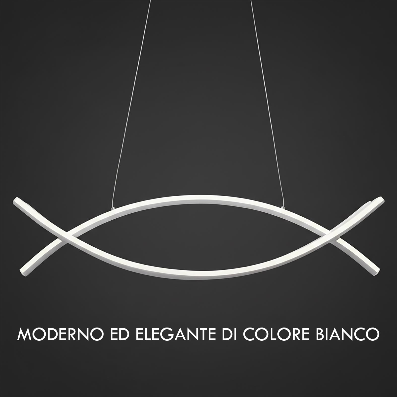 Rinnova i tuoi spazi con questo esclusivo lampadario moderno a LED, caratterizzato da un design stilizzato composto da tre barre curve che si intrecciano in un gioco armonioso di luce. Non è solo un corpo illuminante, ma un vero e proprio elemento d'arredo capace di donare dinamismo e originalità a qualsiasi ambiente, anche quando è spento.