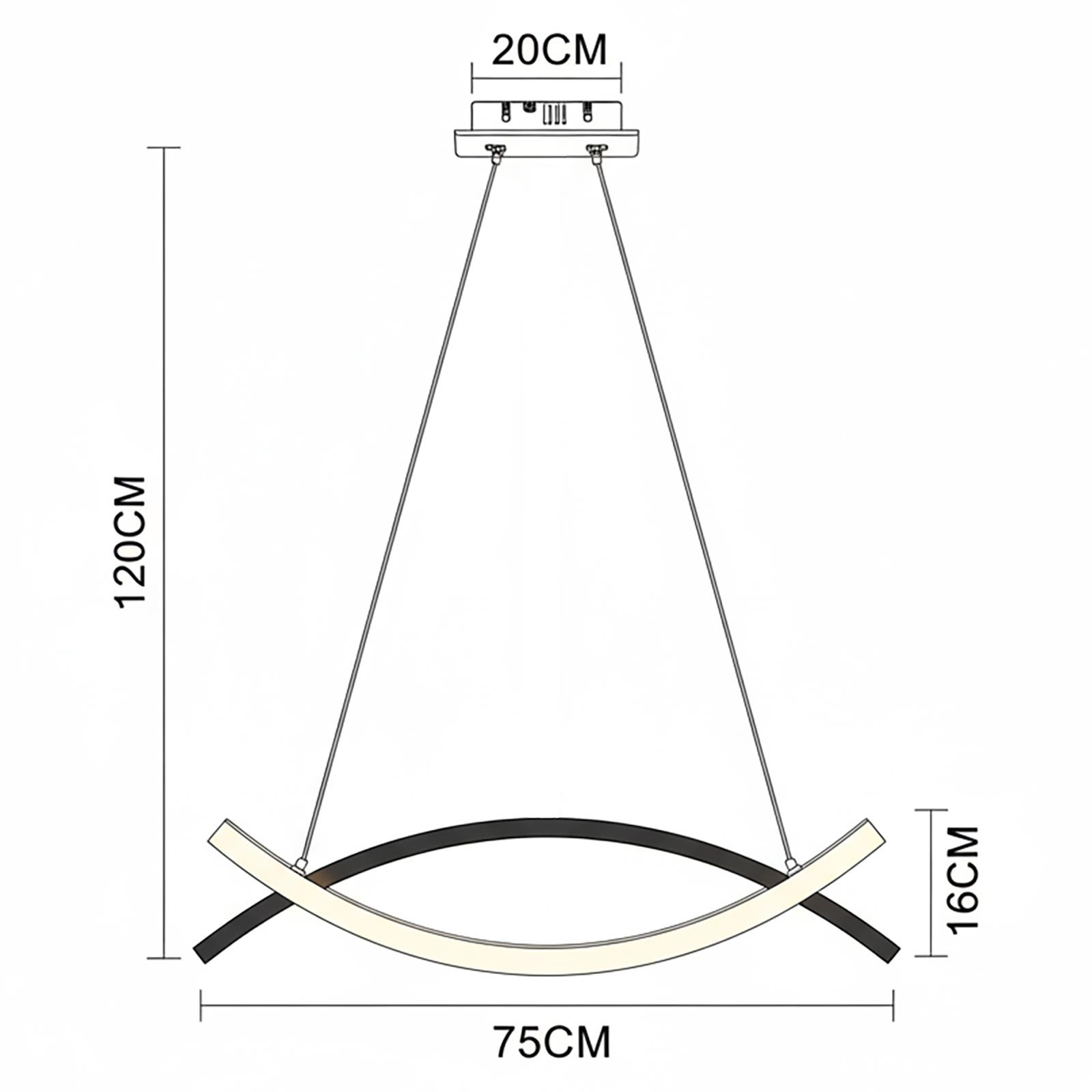 Rinnova i tuoi spazi con questo esclusivo lampadario moderno a LED, caratterizzato da un design stilizzato composto da tre barre curve che si intrecciano in un gioco armonioso di luce. Non è solo un corpo illuminante, ma un vero e proprio elemento d'arredo capace di donare dinamismo e originalità a qualsiasi ambiente, anche quando è spento.