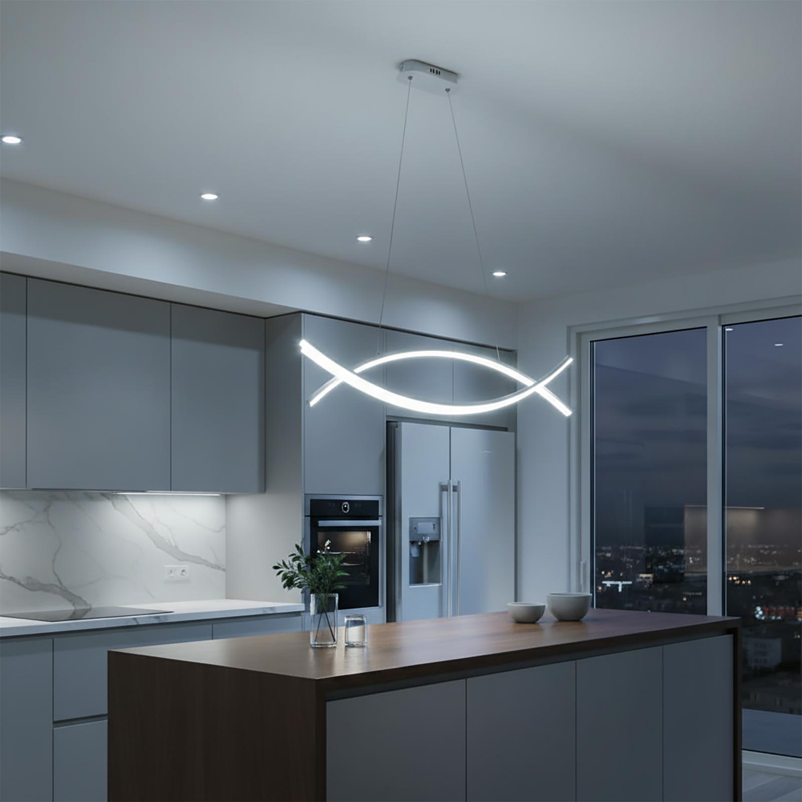 Grazie alla sua estetica contemporanea e alla finitura in alluminio bianco, questo lampadario è la scelta ideale per chi cerca un'illuminazione d'impatto per cucine moderne, soggiorni, uffici, saloni, studi professionali o locali commerciali come bar, pizzerie e ristoranti.