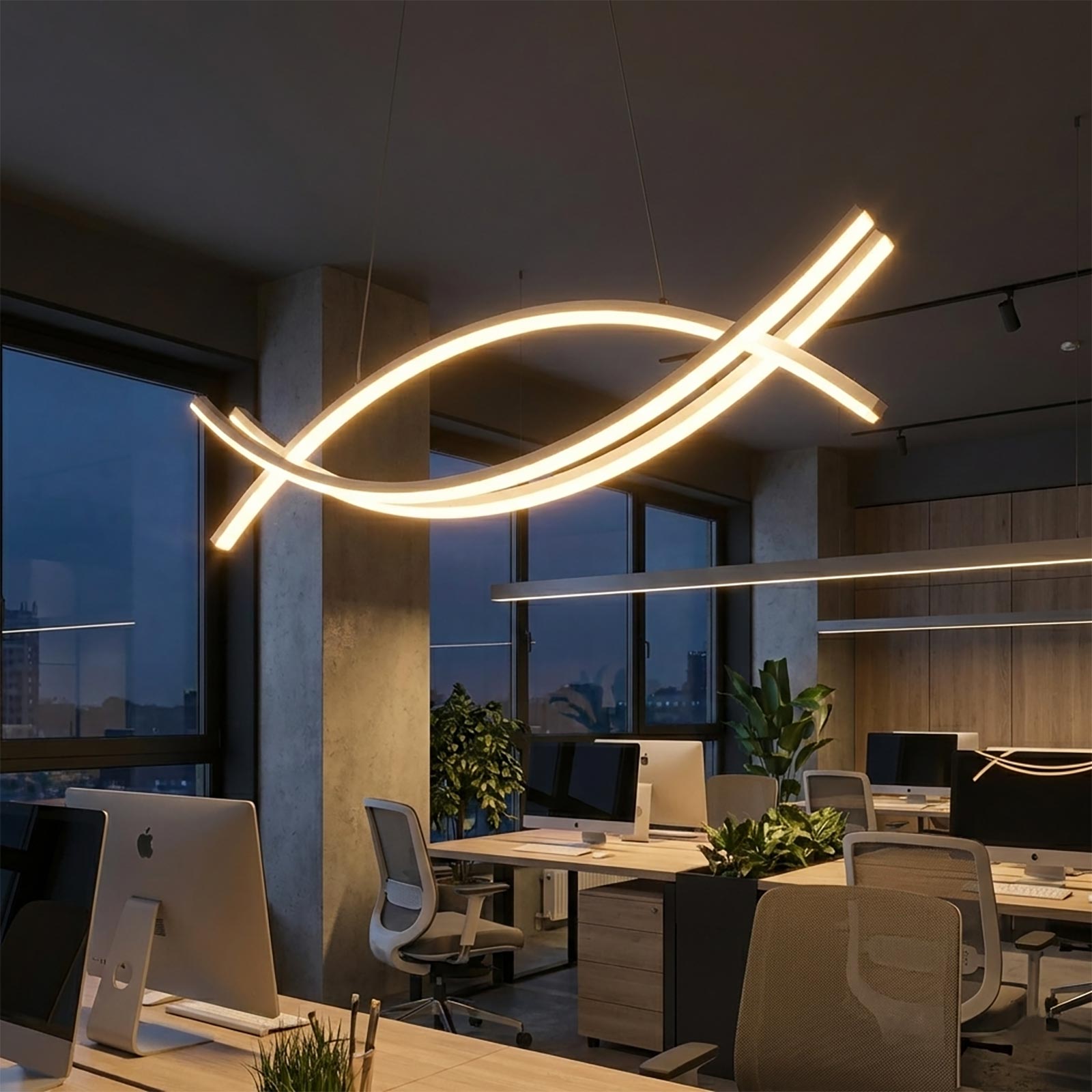 Design Unico: Le linee curve intrecciate creano un effetto ottico moderno e sofisticato. Risparmio Energetico: Tecnologia LED ad alto rendimento. Qualità Garantita: Struttura robusta in alluminio per una lunga durata nel tempo.
