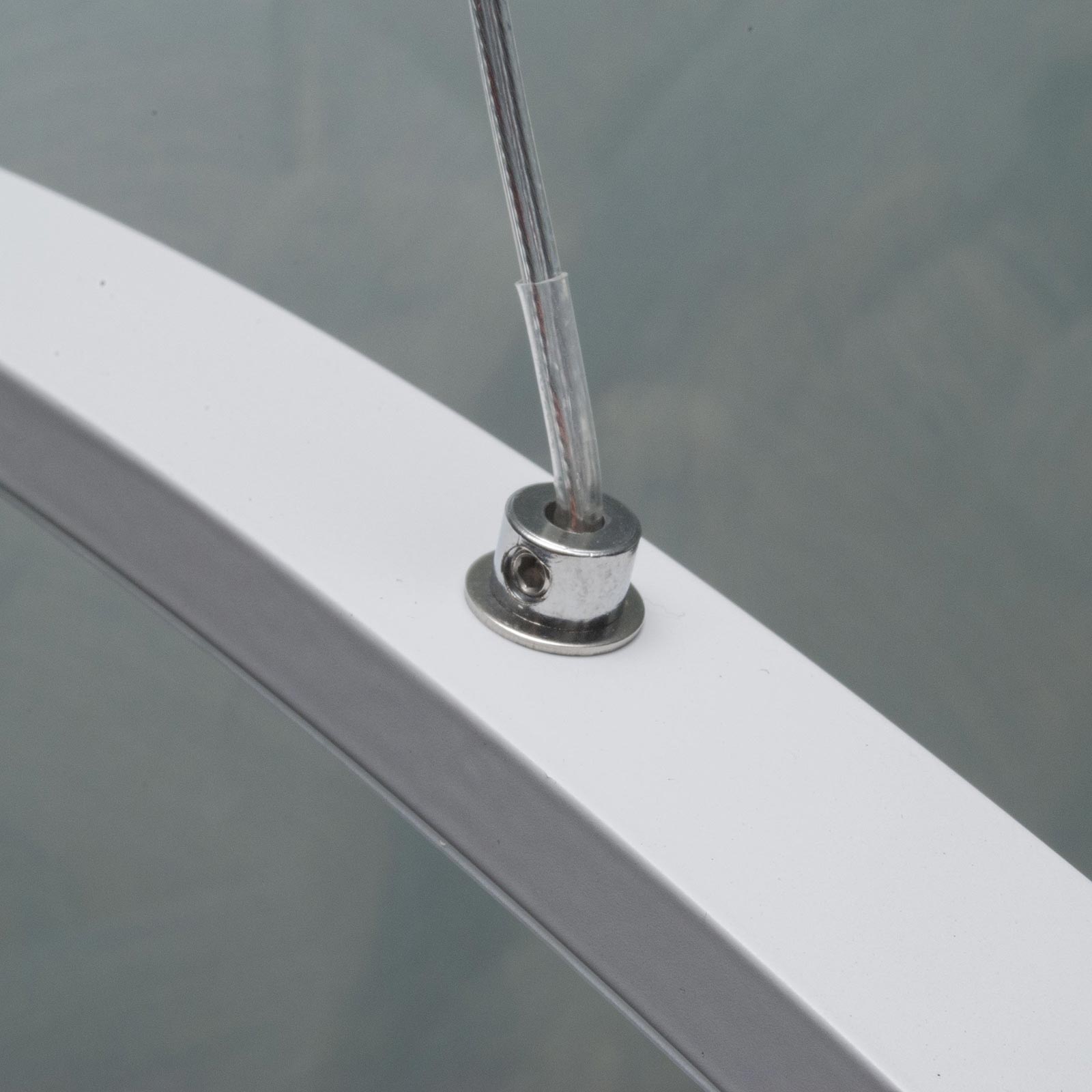 Il sistema di sospensione è completamente regolabile fino a un'altezza massima di 120 cm, permettendoti di adattare il lampadario alla perfezione sopra un tavolo da pranzo o al centro di una stanza. Fornito completo di rosetta coprifili con staffa per un fissaggio a soffitto rapido e sicuro. Si collega direttamente alla rete elettrica a 230V, senza bisogno di alimentatori esterni.