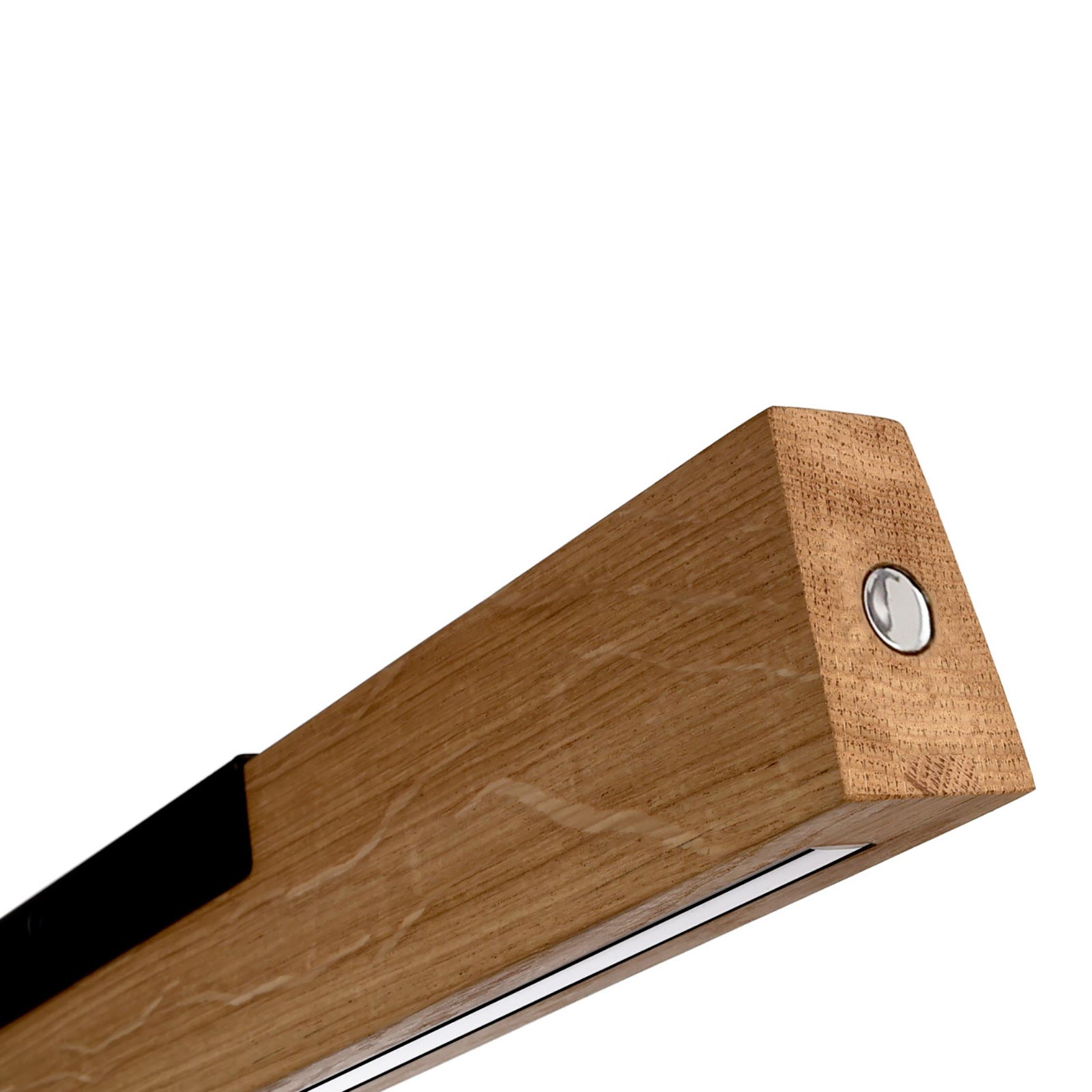Elegante e funzionale lampada LED a sospensione realizzata in legno di quecrcia di alta qualità con materia prima certificata FSC rovere europeo dal design moderno dotata di led integrati smd ad alta luminosità con un consumo energetico ridotto, ideale per uso commerciale in ambienti interni come negozi, uffici, attività commerciali, studi medici, centri commerciali, ed in tutti quei posti dove si vuole illuminare ed arredare i propri ambienti interni. Dimmerabile tramite un sensore tattile al lato del pendente.