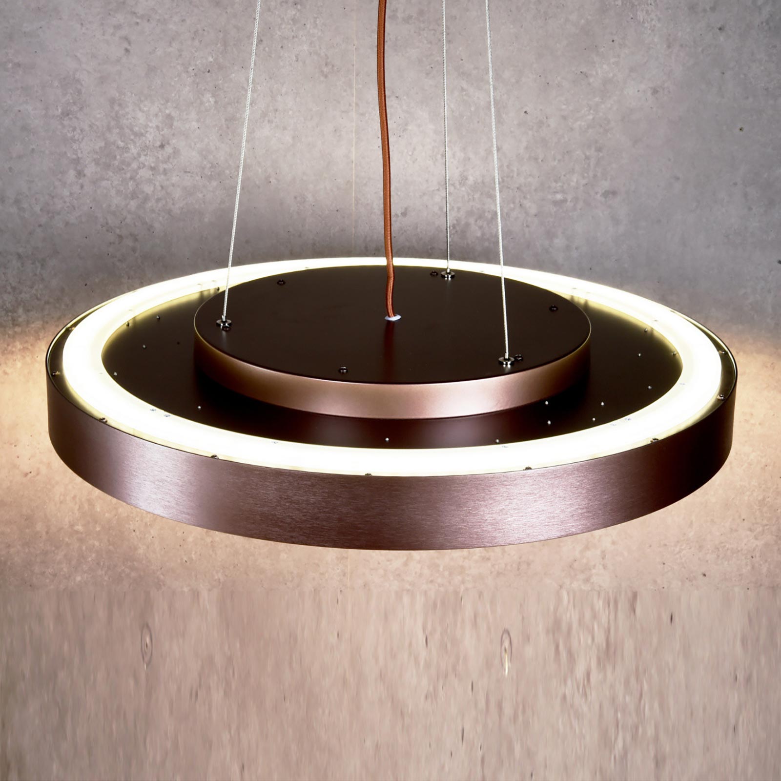 Il lampadario è disponibile in 4 colori: Bianco, Nero, Argento e Marrone questo consente di scegliere il colore adatto all'arredamento. Facile da installare viene fornito completo di rosetta copri fili in metallo da cui partono 3 fili in acciaio che sostengono il cerchio luminoso. La sospensione è regolabile con un altezza massima di 1800mm. Il lampadario ha un'intensità luminosa di 6000 lumen con un angolo di diffusione ampio di 115 gradi.