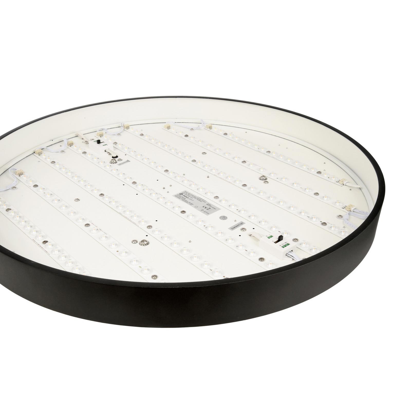 Il lampadario è disponibile in 4 colori: Bianco, Nero, Argento e Marrone questo consente di scegliere il colore adatto all'arredamento. Facile da installare viene fornito completo di rosetta copri fili in metallo da cui partono 3 fili in acciaio che sostengono il cerchio luminoso. La sospensione è regolabile con un altezza massima di 3000mm. Il lampadario ha un'intensità luminosa di 8700 lumen con un angolo di diffusione ampio di 115 gradi.