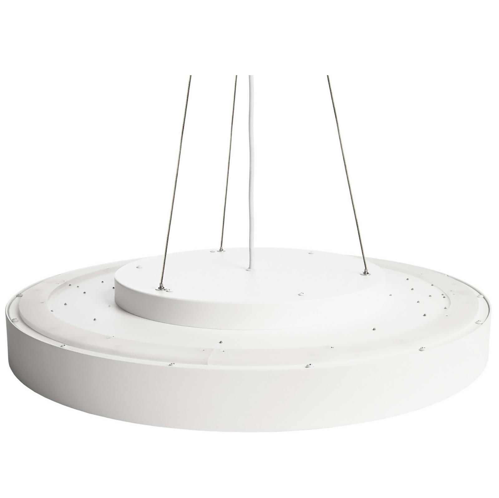 Il lampadario è disponibile in 4 colori: Bianco, Nero, Argento e Marrone questo consente di scegliere il colore adatto all'arredamento. Facile da installare viene fornito completo di rosetta copri fili in metallo da cui partono 3 fili in acciaio che sostengono il cerchio luminoso. La sospensione è regolabile con un altezza massima di 3000mm. Il lampadario ha un'intensità luminosa di 8700 lumen con un angolo di diffusione ampio di 115 gradi.