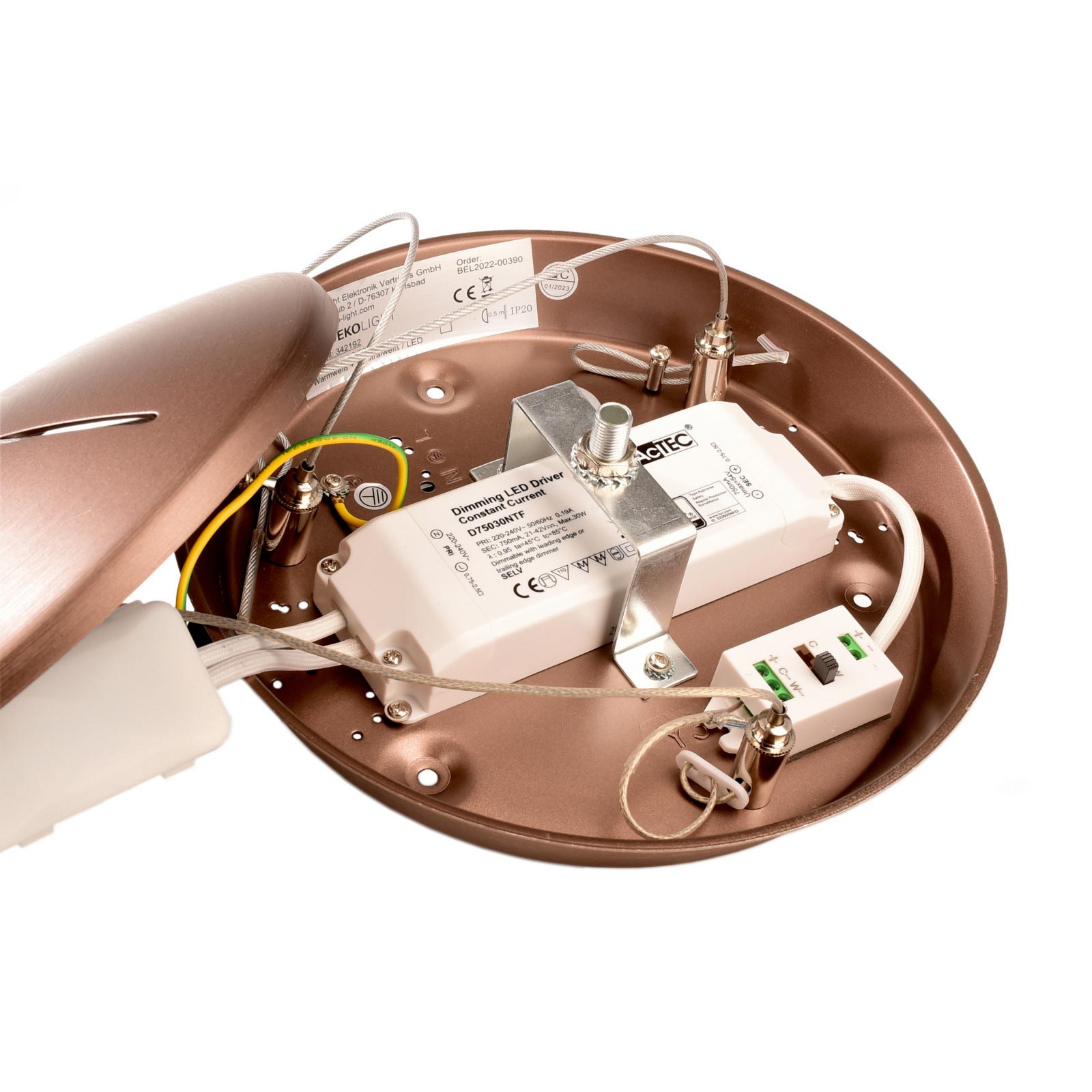 Dimensioni lampadario: Ø 380mm x - 35mm - La rosetta di fissaggio ha una dimensione di: Ø 220mm x 65mm - La lunghezza della sospensione è regolabile fino a 1500mm