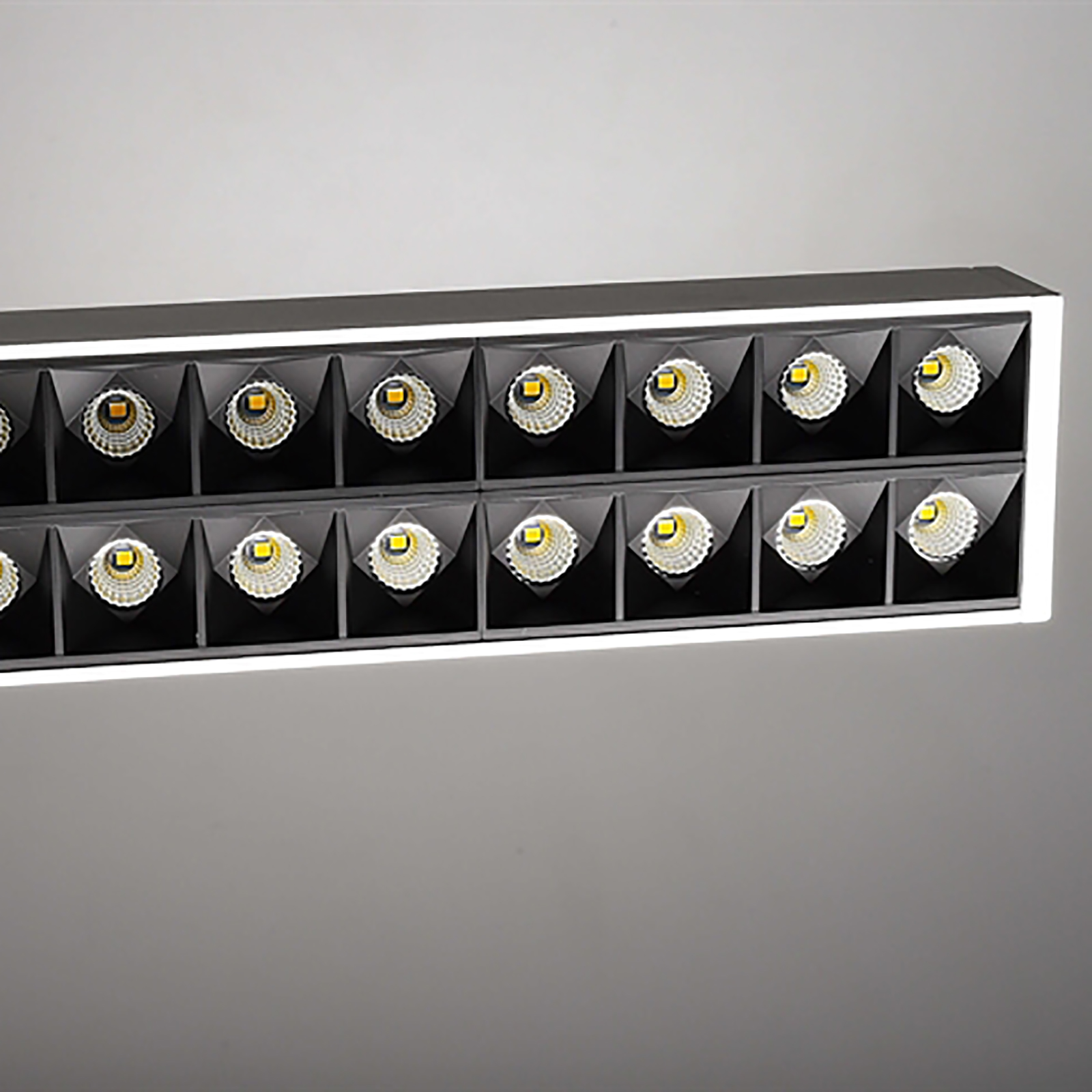 Lampada LED a sospensione dal design moderno realizzata in alluminio disponibile in 2 colori: bianco e grigio. Dotata di 176 led smd ad alta luminosità con un consumo nergetico ridotto, ideale per uso commerciale in ambienti interni come negozi, uffici, attività commerciali, studi medici, centri commerciali, ed in tutti quei posti dove si vuole illuminare ed arredare i propri ambienti interni.