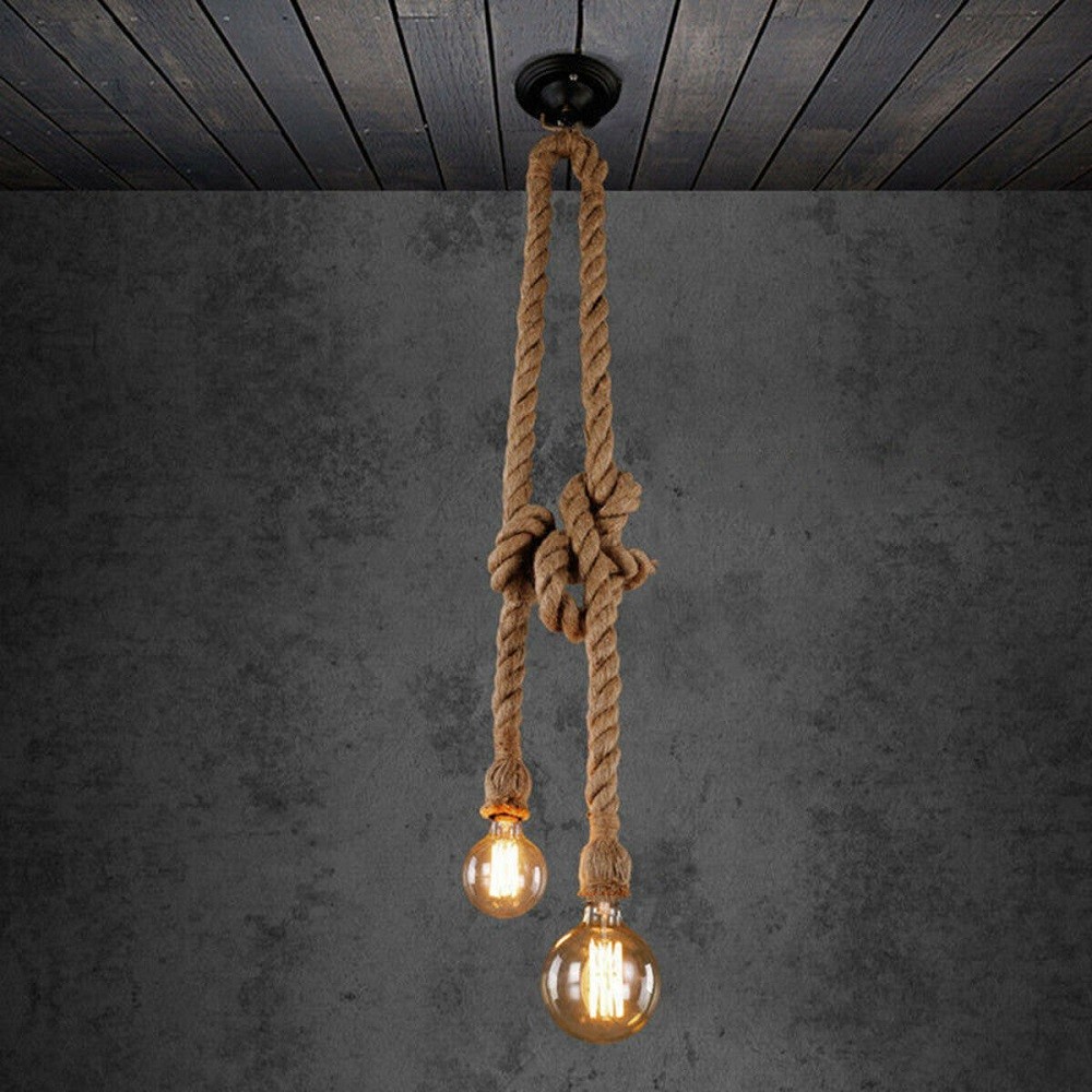 Pendente a sospenione con doppia corda e doppio portalampda attacco E27 supporta 2 lampadine led max 60W x 2, ideale per lampade led a filamento per creare effetti luce vintage e non solo compatibile con tutti i tipi di lampade con attacco E27. Adatto anche come lampada decorativa per camere, camerette, taverne dallo stile rustico, cantine ed in tutti quei posti dove si vule una fonte d'illuminazione minimal.
