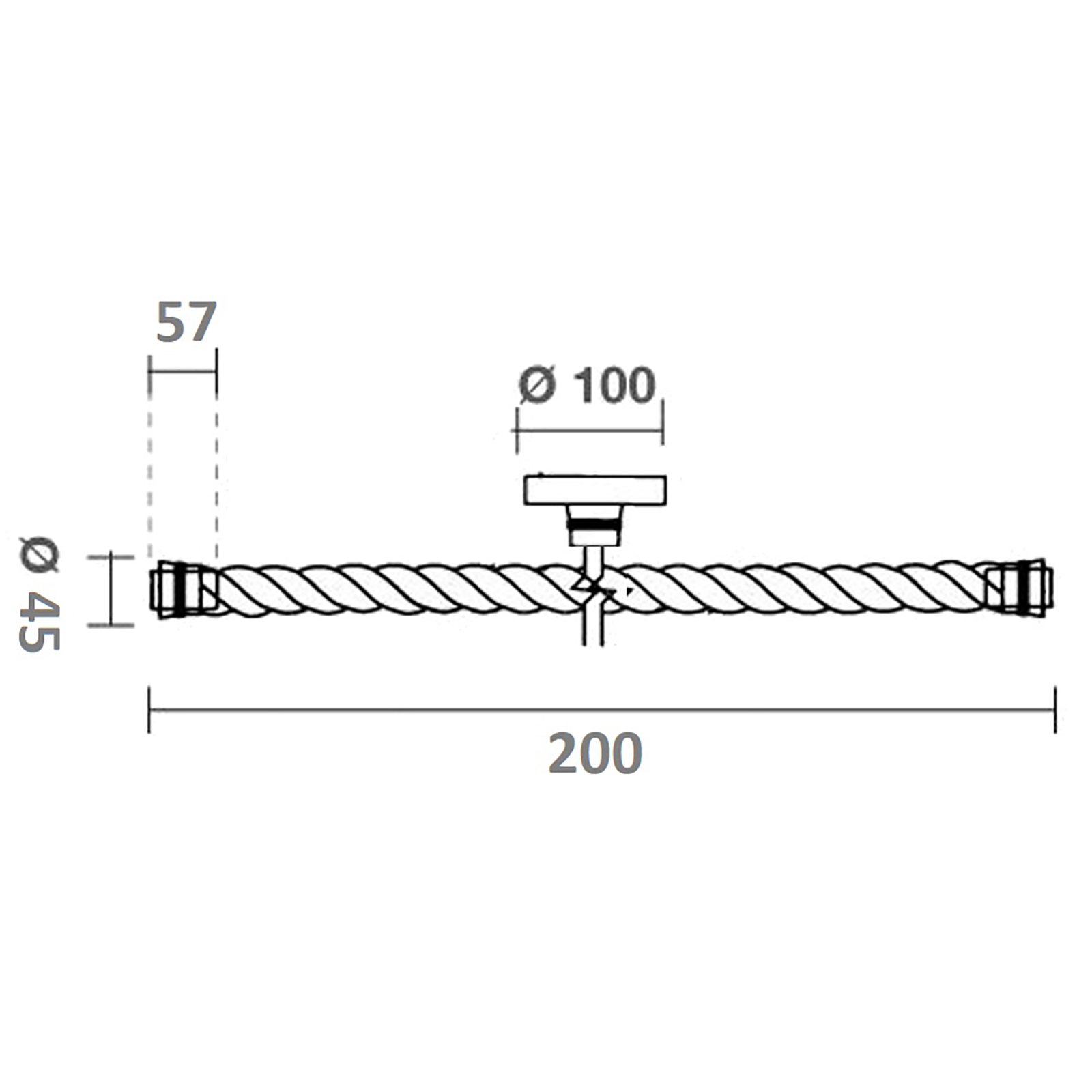 Dimensioni del portalampada altezza: 5.5cm - Lunghezza della corda complessiva 200cm - Diametro della rosetta: 12cm - Altezza: 2cm.