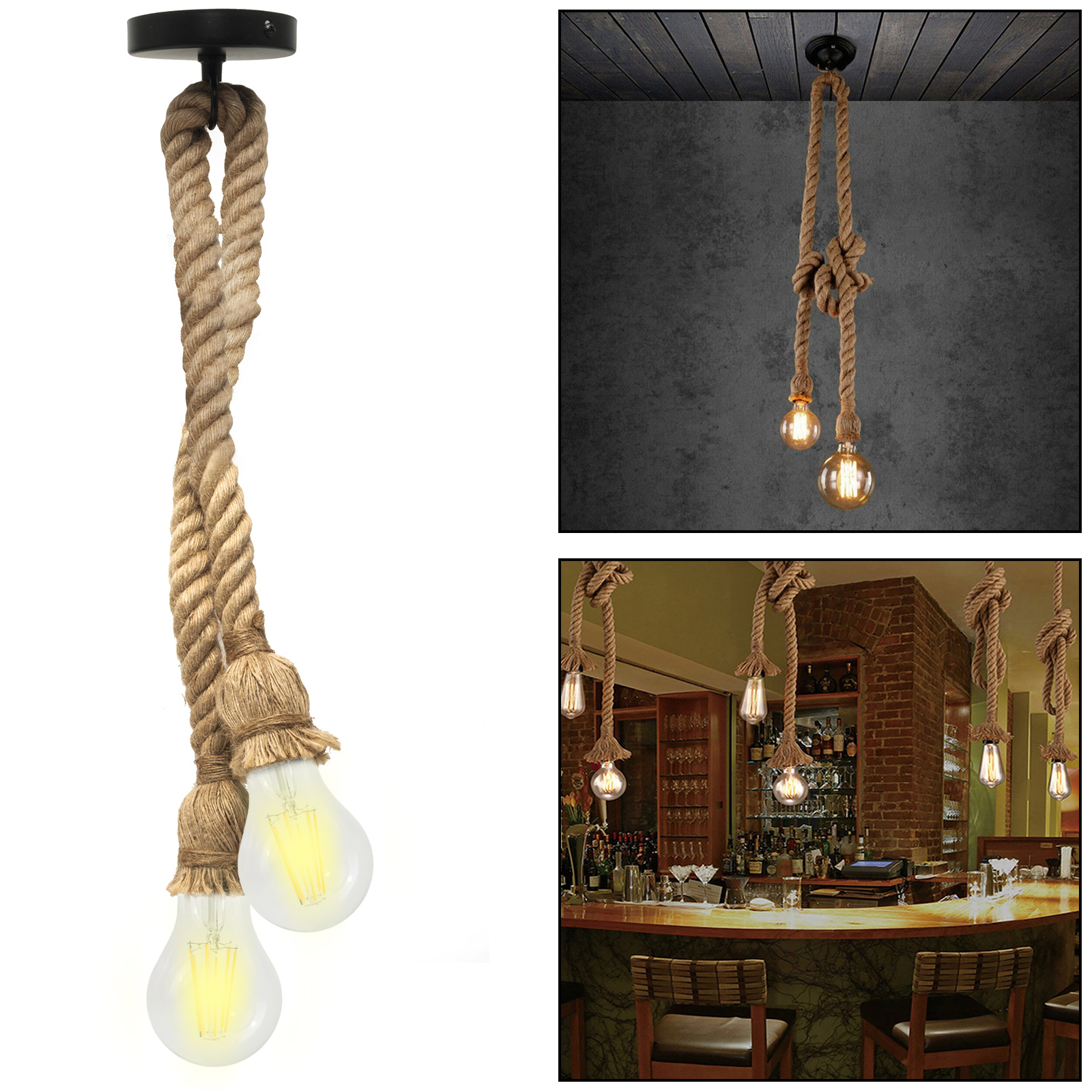 Pendente a sospenione con doppia corda e doppio portalampda attacco E27 supporta 2 lampadine led max 60W x 2, ideale per lampade led a filamento per creare effetti luce vintage e non solo compatibile con tutti i tipi di lampade con attacco E27. Adatto anche come lampada decorativa per camere, camerette, taverne dallo stile rustico, cantine ed in tutti quei posti dove si vule una fonte d'illuminazione minimal.
